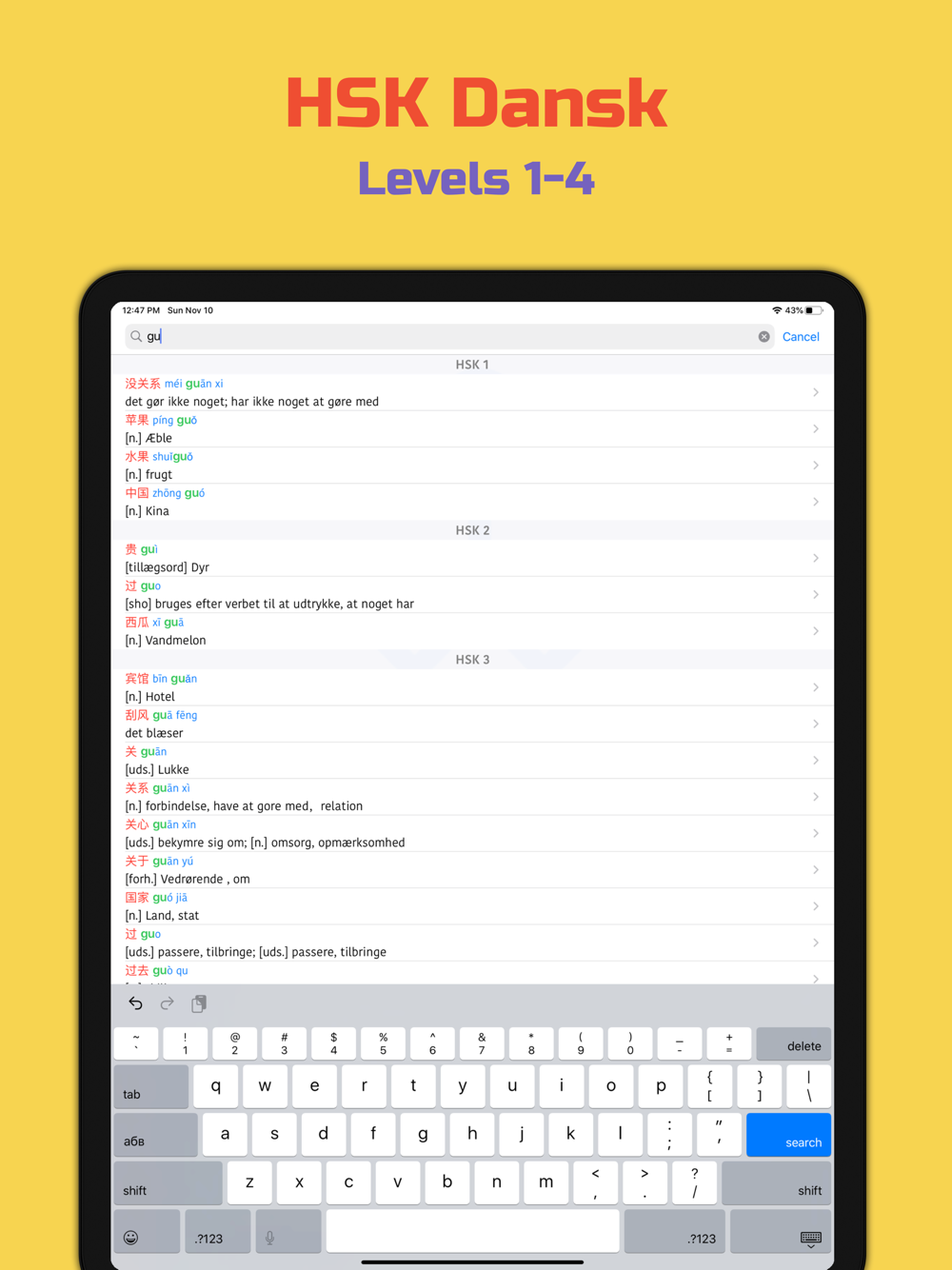 HSK Vocabulary including: