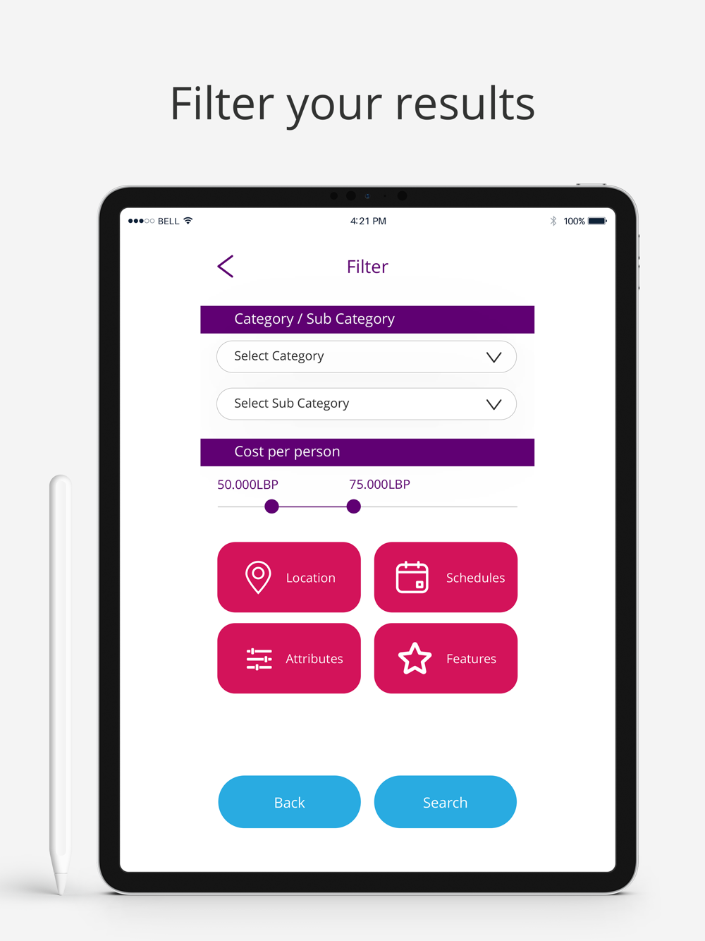 - Filter your searches by type of activity, location, opening hours, accessibility, even ambience and loudness