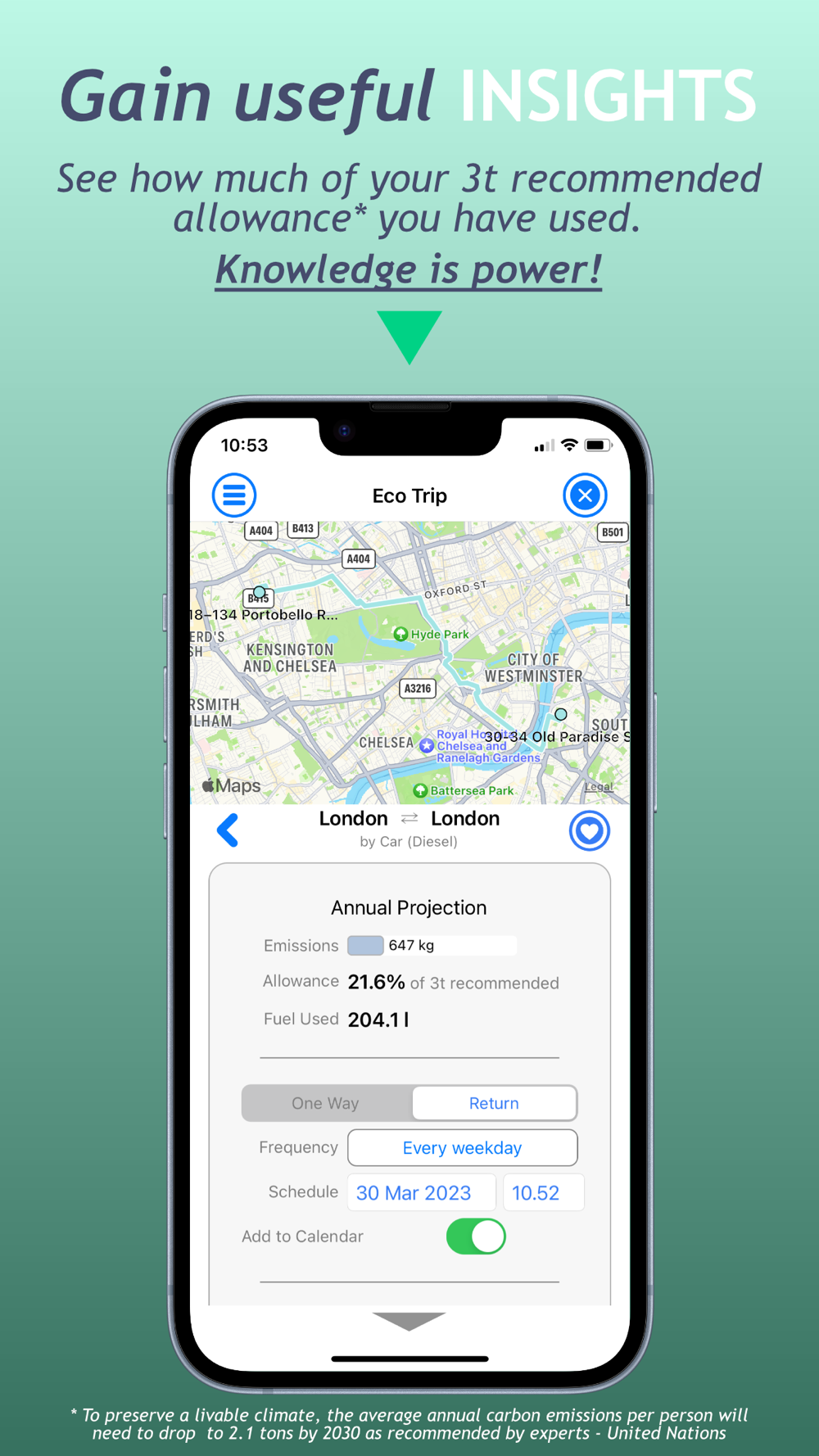 The first step in reducing our emissions is understanding what they are to start with. Armed with this knowledge, the next step is determining how to reduce them. Eco Trip gives you this power.