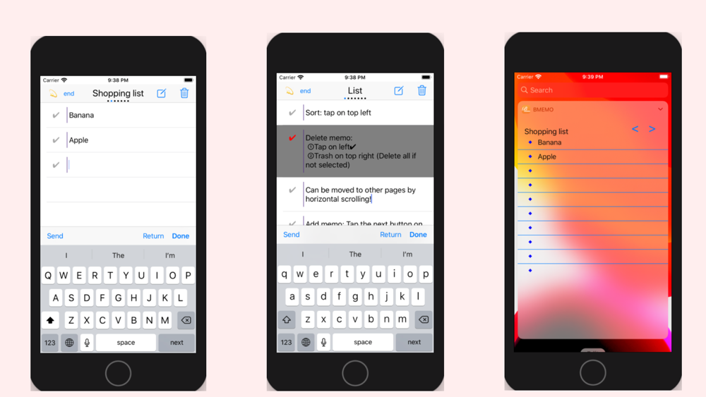 Auto-save memo, count characters, send memo, back button, search, replace, create PDF ...
