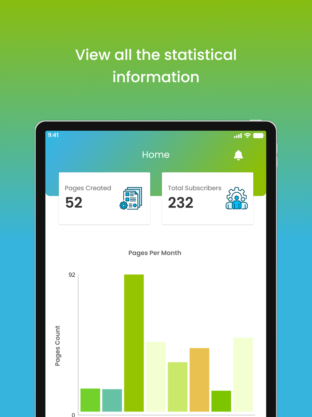 The app allows the user to view the statistical data of the people subscribing to each of their pages and also allows them to initiate email marketing manually based on the email addresses via which the users have subscribed.