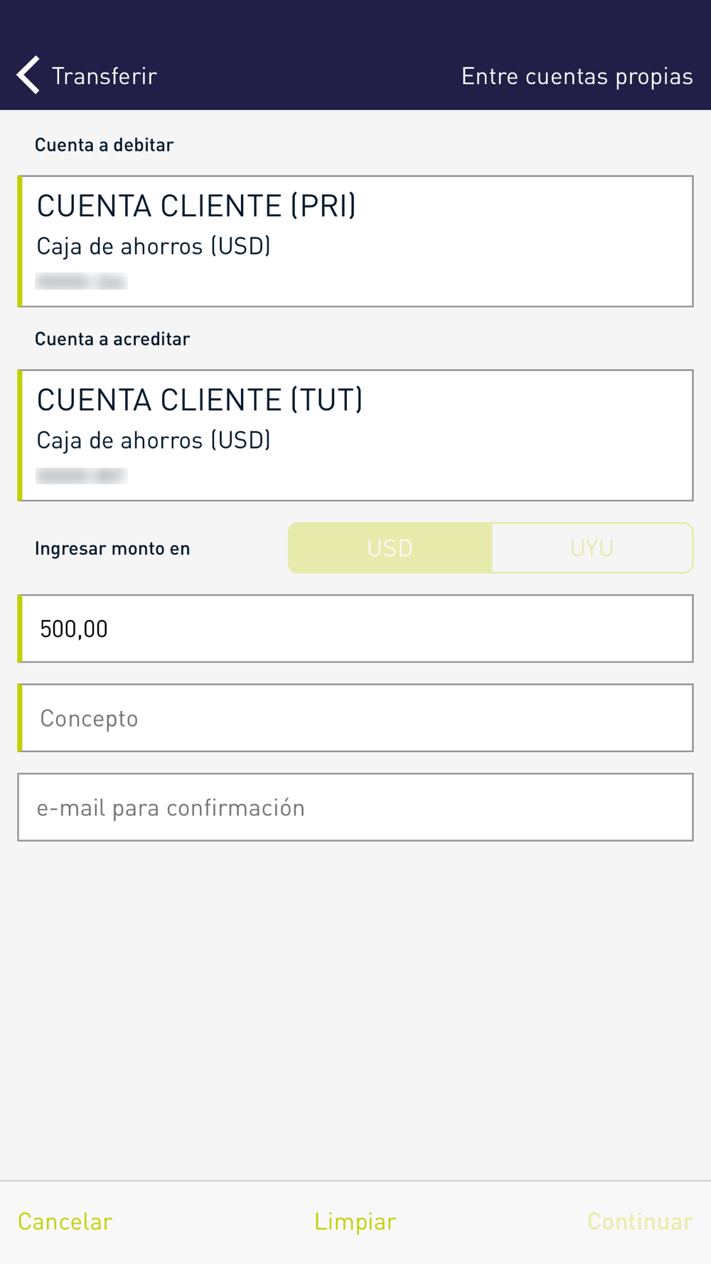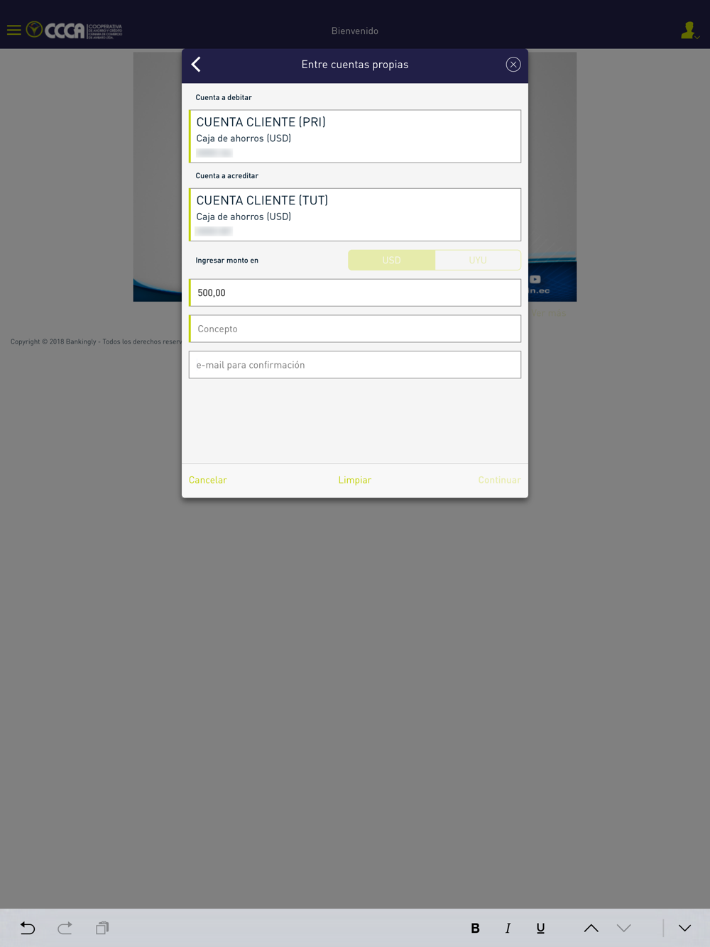 * Transferencias internas y a otros bancos