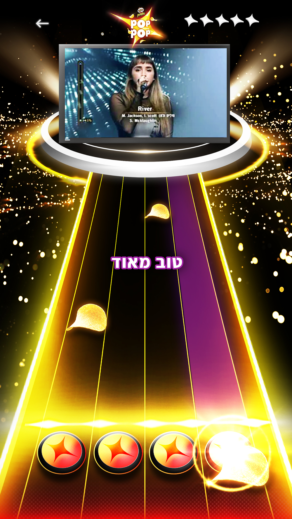 הכנסו לפופ פופ, בחרו שיר מהביצועים שאהבתם בתכנית "הכוכב הבאא לאירוויזיון" ונסו ללחוץ לפי הקצב ובעיתוי הנכון על הפרינגלסים שנעים לעברכם, ככל שתהיו טובים ומדויקים יותר, תזכו ביותר כוכבים!