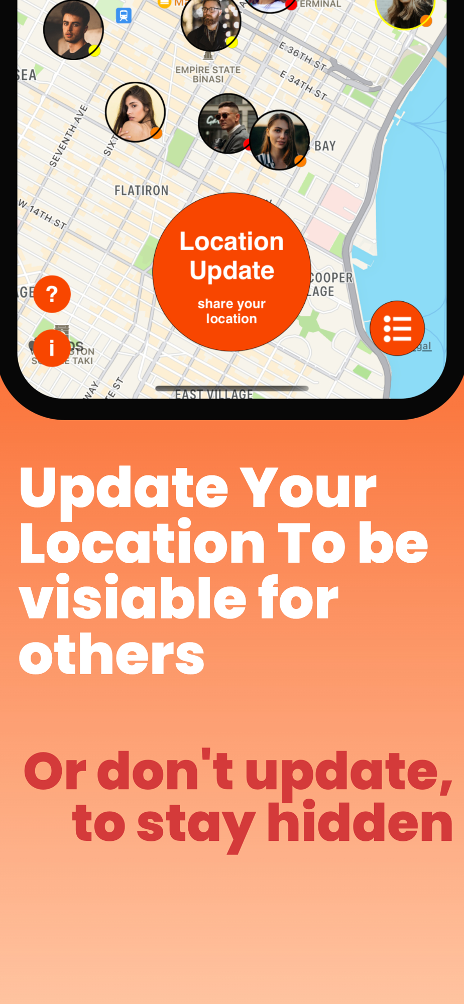 2 - In other words, you should update your location frequently to be more visible on the map. Because a location update only makes you visible on the map for a few hours.
