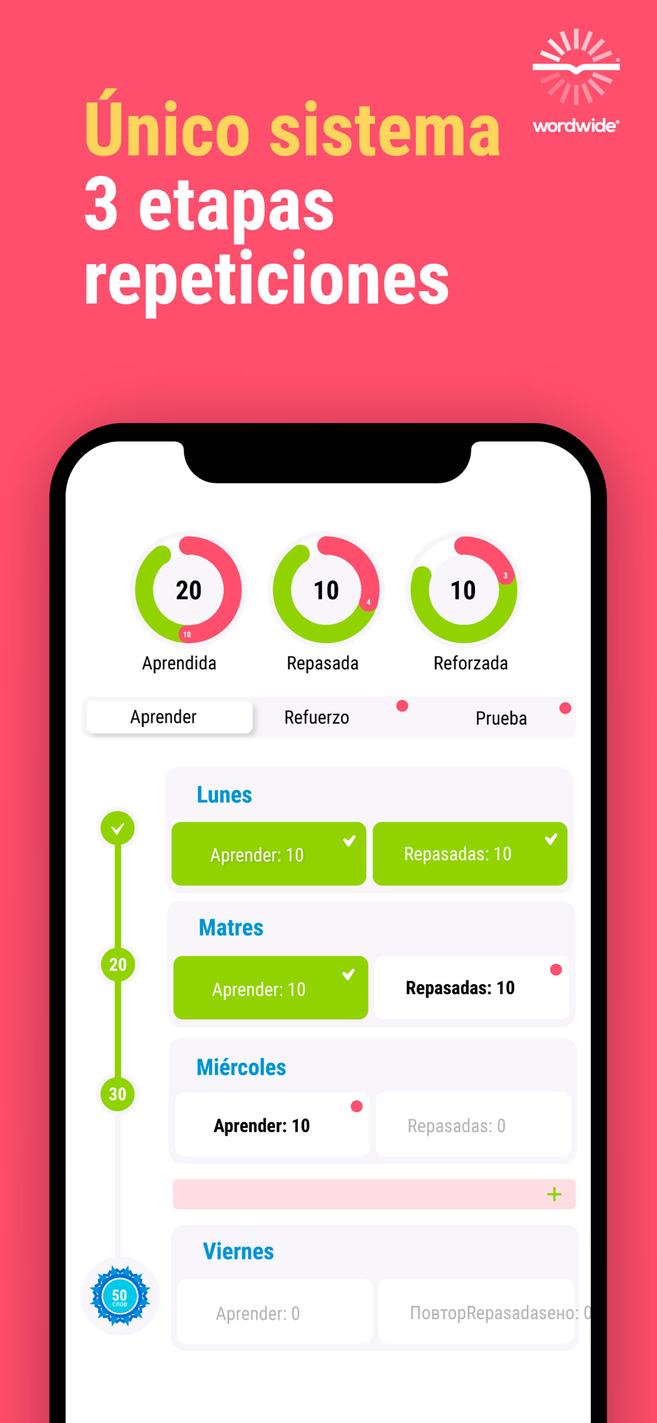 "Worldwide es una aplicación innovadora para aprender inglés creada por las mentes brillantes que desarrollaron ""3000 Words"", que ya tiene más de dos millones de descargas. Analizamos y tuvimos en cuenta todas las recomendaciones que nos enviaron los usuarios y creamos una aplicación revolucionaria que ofrece una manera increíblemente eficaz de estudiar inglés.