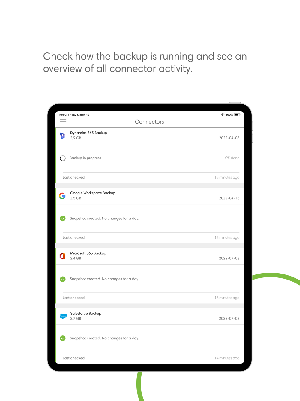 The app is a free and indispensable tool to use together with your Keepit SaaS Cloud Backup and Recovery service, covering the world’s most popular SaaS Applications.
