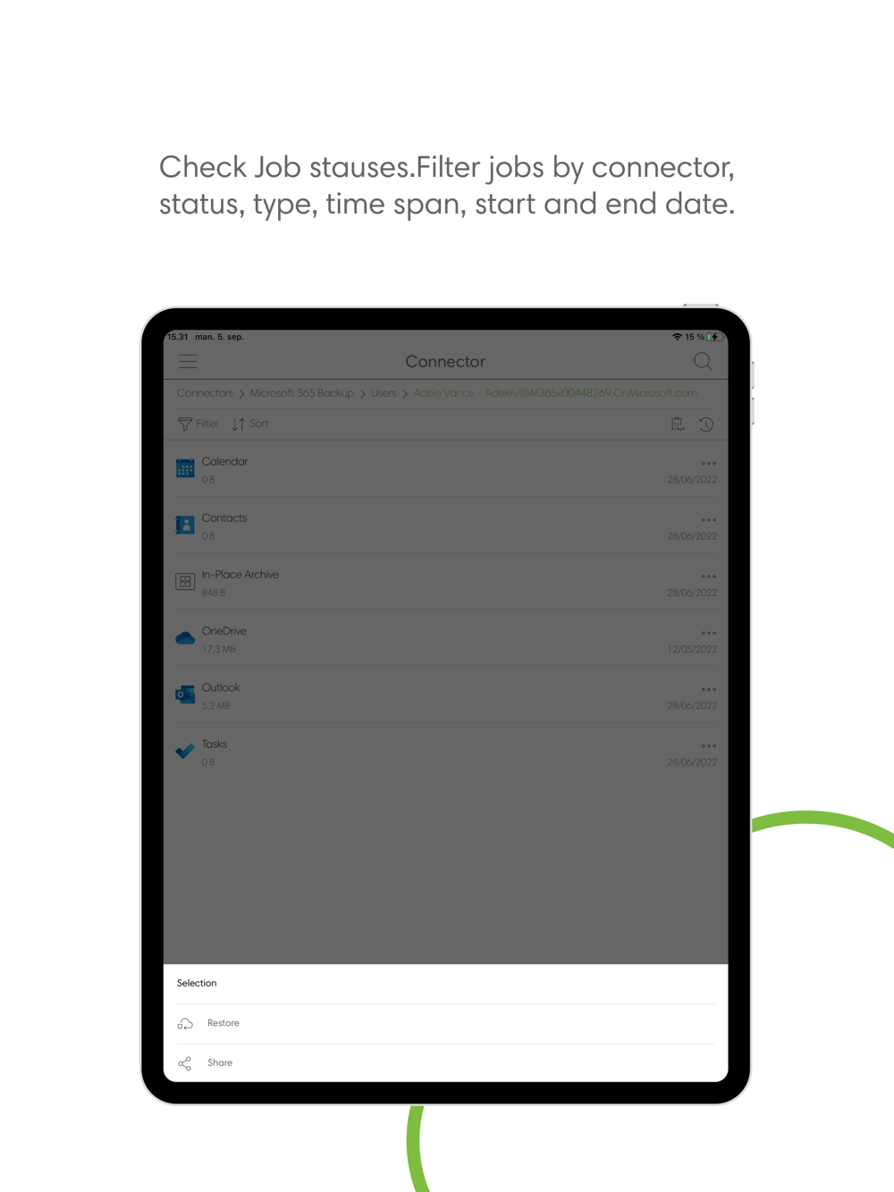 Keepit Admin on-the-go data recovery app grants mobile access to your Microsoft 365, Dynamics 365, Google Workspace, and Salesforce data quickly, from wherever you are, in an intuitive, easy, and secure way. Save time on search and recovery.