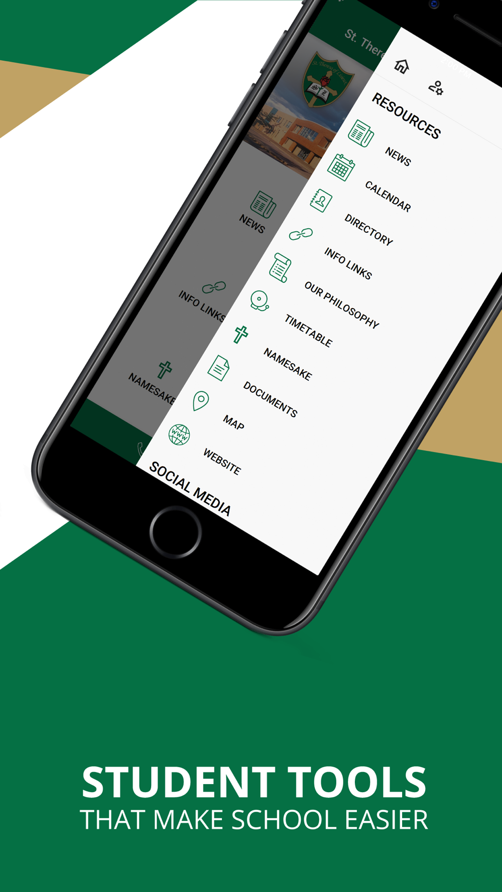 The St. Theresa of Lisieux CHS app by SchoolInfoApp features: