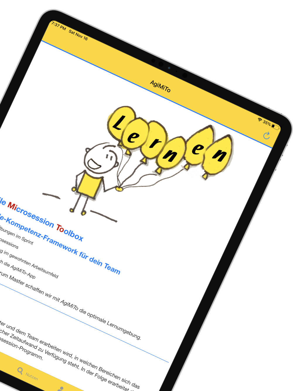 Mit der Agilen Microsession Toolbox (kurz AgiMiTo) werden Konzepte, Inhalte, sowie Übungen für das Scrumteam zur Verfügung gestellt. In einem Workshop arbeiten wir mit dem Scrum Master am individualisierten Vermittlungskonzept und stärken ihn in seiner Arbeit mit dem Developer Team.