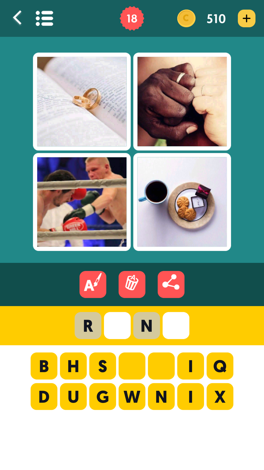Each puzzle contains four pictures and one word in common, it should be guessed by players.