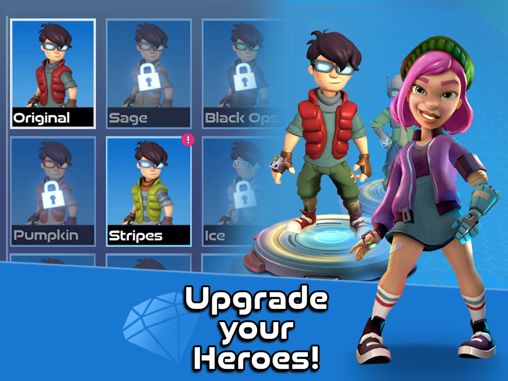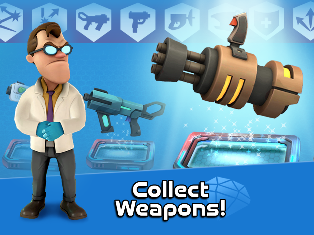 Turbo Shot features a ton of upgradable power-ups, guns and characters. Power-Ups are littered throughout the game world for you to pick up, improving your fire rate or giving you a shield. Unlock a variety of weapons and characters with their own unique attributes, then upgrade and max out their potential!