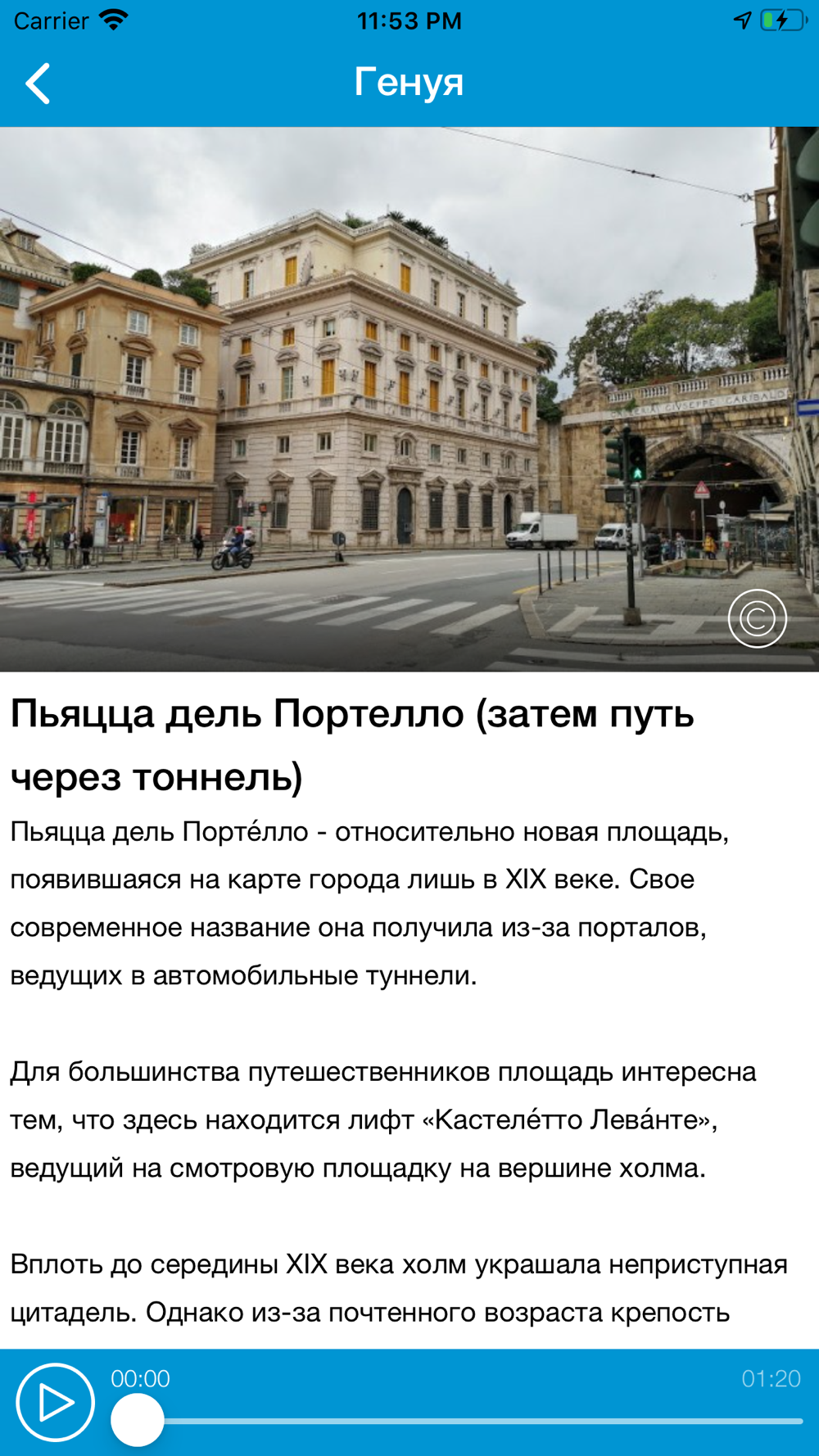 Аудиогид «Генуя: Путеводитель и Карта» – это готовая пешая аудио экскурсия по историческому центру столицы Лигурии, которая позволит Вам совершить увлекательную прогулку по самым интересным местам города и узнать о нем гораздо больше, чем успевает 95% путешественников.