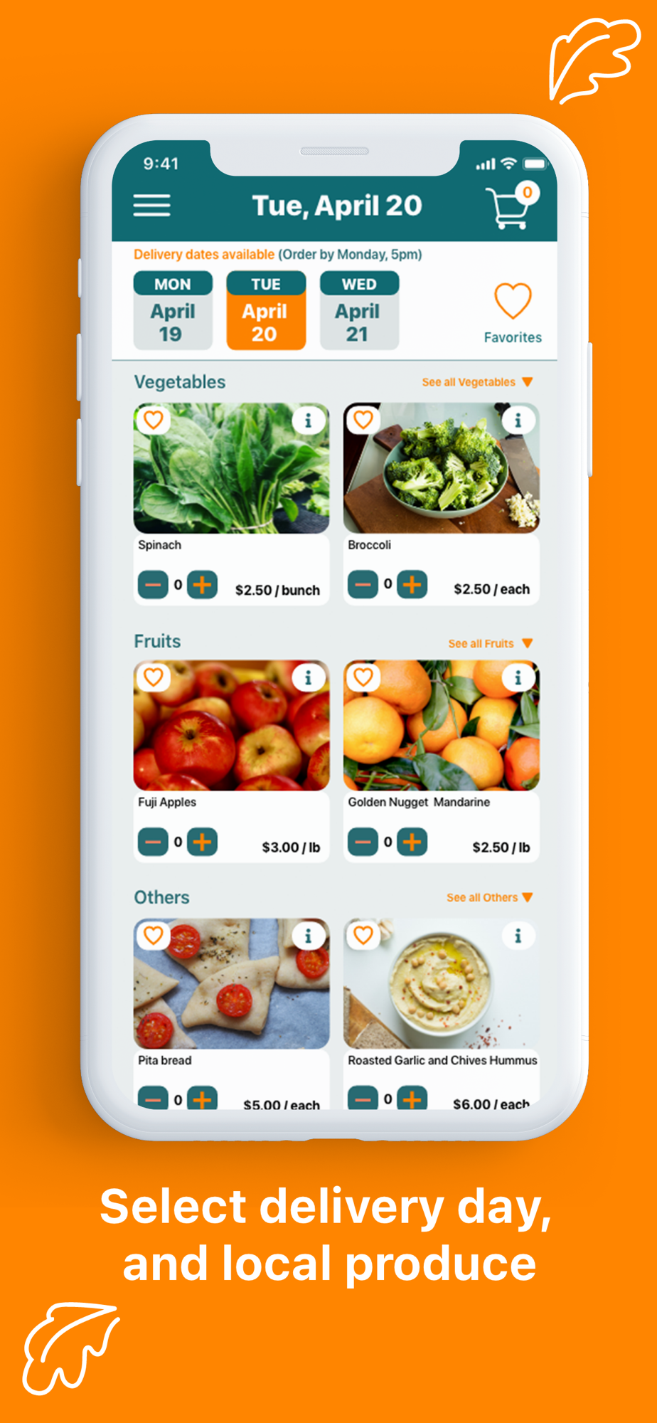 Enter your address to find available delivery days then select the produce you want and checkout. We automatically apply any discounts you are eligible for so you get exactly what you want for the best possible price at a delivery date you select! No minimums and no subscriptions!