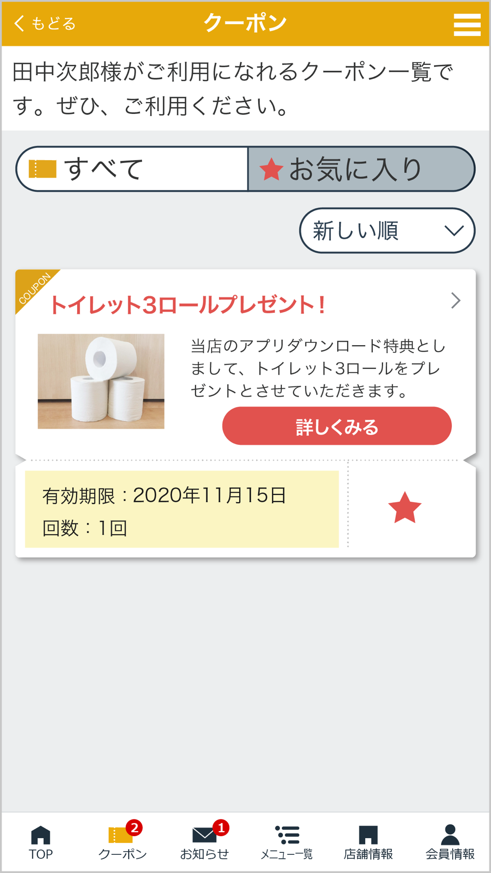 当店で実施中のキャンペーン情報や各種最新情報をお届けします。