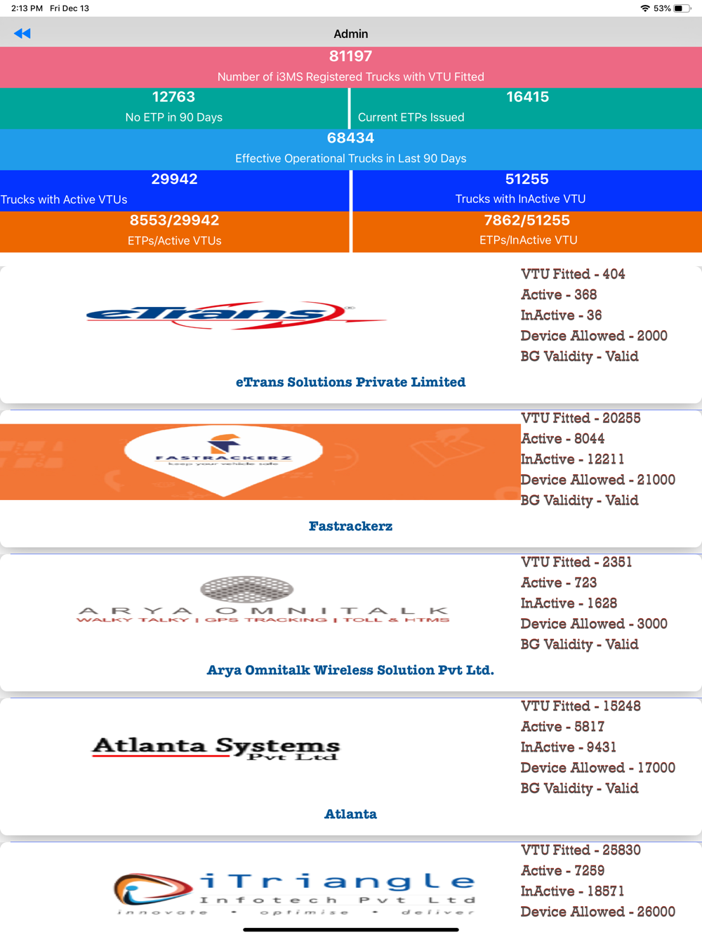 2. Dashboard details screen for that vehicle will appear.