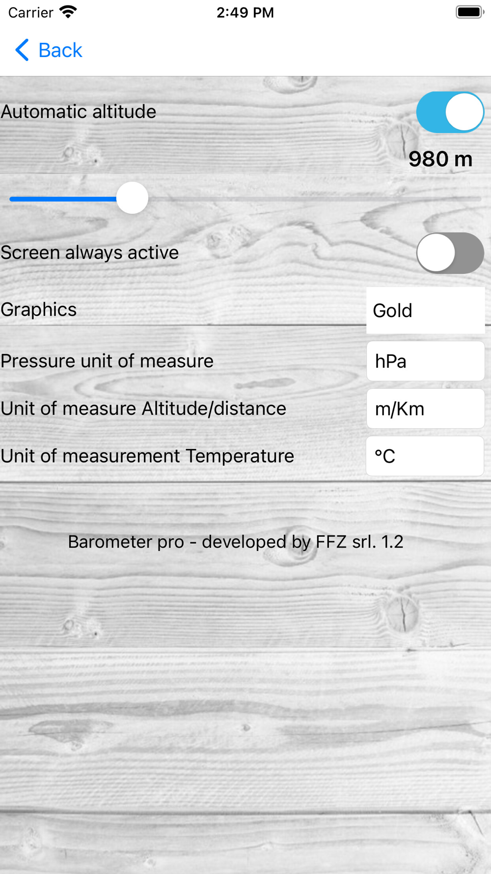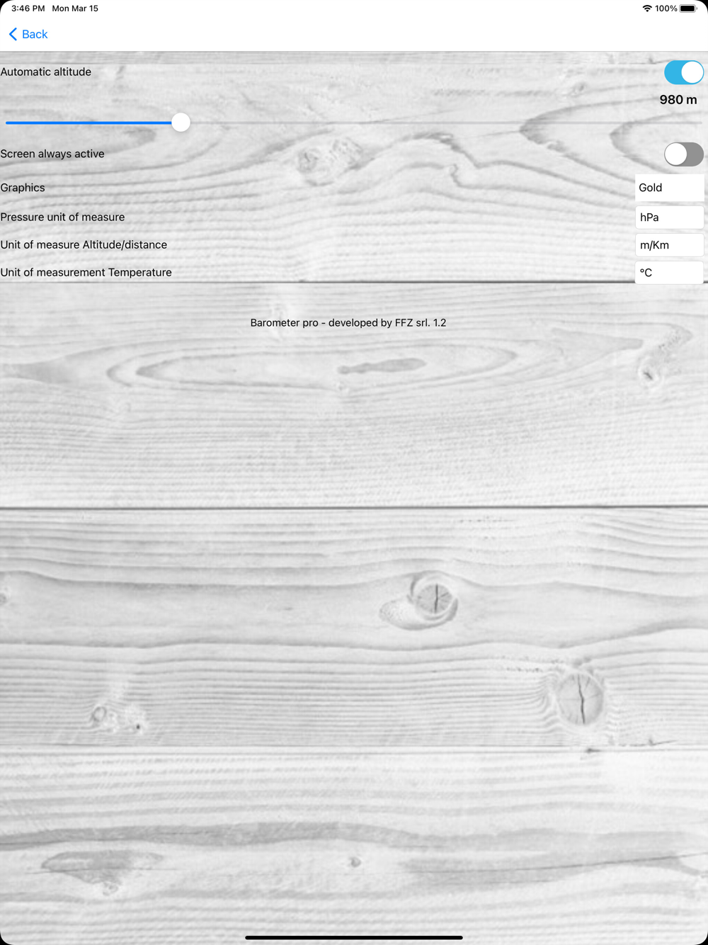 Professional barometer. You will be able to view the trend of atmospheric pressure in real time, thus forecasting the change in weather. Absolute precision through the parallel operation of different sensors, such as device pressure sensor, GPS sensor, and remote connection to weather stations near you.