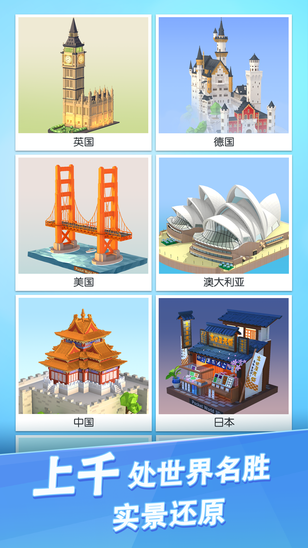 游戏内的模型完美还原了各地的建筑,通过拼接模型,以及模型对应的科普小知识,玩家对世界,对模型有一个更深入的了解。