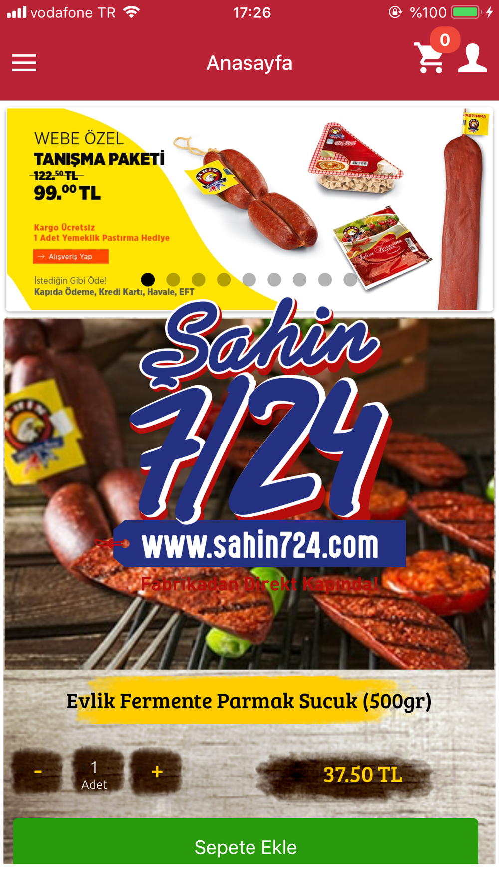 Şahin 724 uygulaması ile tüm ürünlerimizi mobil uygulamamızdan 7/24 sipariş verebilirsiniz. Tüm siparişleriniz 24 saat içerisinde gönderilir. Mobil uygulama ve sanal marketimizde size özel avantajlardan faydalanabilirsiniz. Marketlerde bulamadığınız geleneksel özel ürünlerimize ulaşmak için Kayseri'ye gelmenize gerek duymadan ürünlerinizi sipariş verebilirsiniz.