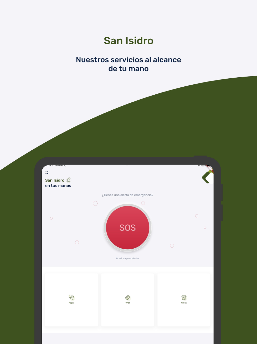 San Isidro en tus manos es una aplicación que contiene información de importancia tanto para los vecinos del Distrito, como para los visitantes. Así mismo centraliza diversos servicios, transacciones y alertas. de manera que se constituye en un canal de vital importancia para la interacción del vecino con su Gobierno Municipal.