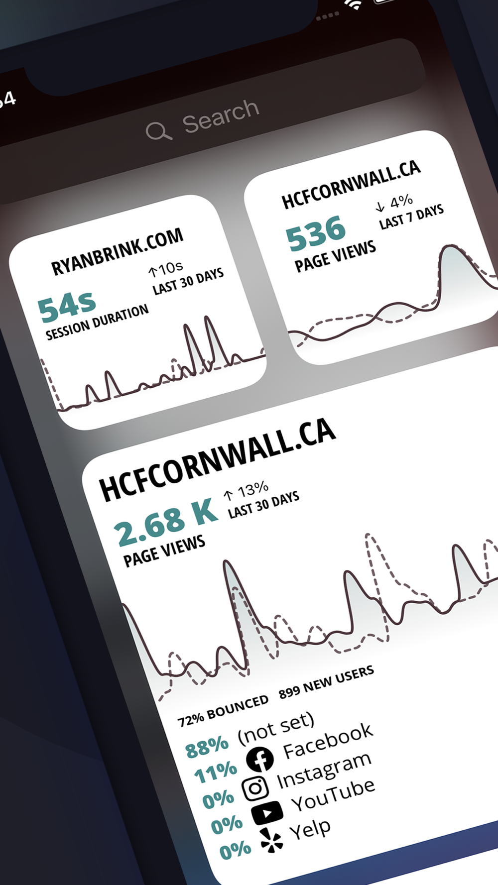 • Brand-new iOS 14 widgets give at-a-glance analytics information without even having to unlock your iPhone. View metrics like users, page views, session duration, goal completions and more for today, yesterday, the last 7 days or the last 30 days. The large widget also adds dimension information like social media referrals and source / medium.