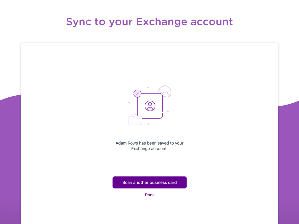· Automatically converts physical business card to new contact in Exchange and can be pulled into any email client