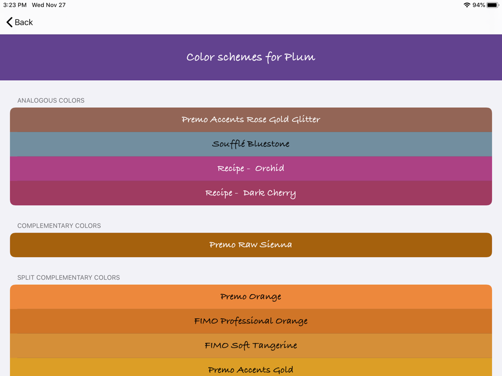 Design awesome color schemes by creating your own palettes with clay colors. Use a photo to pick the color you want to match. Find analogous or complementary clay colors for your palette.