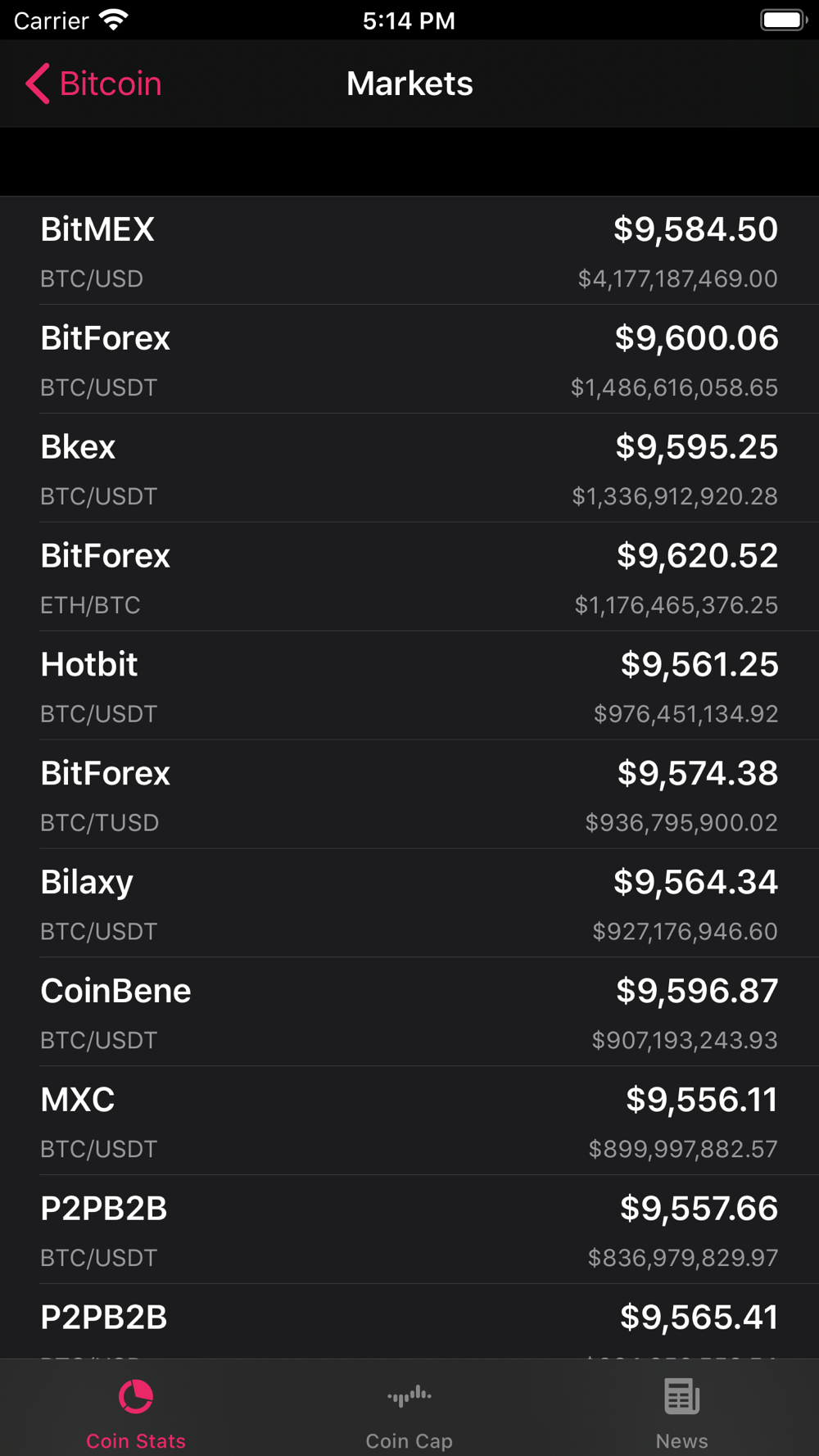 - Market info of each exchange