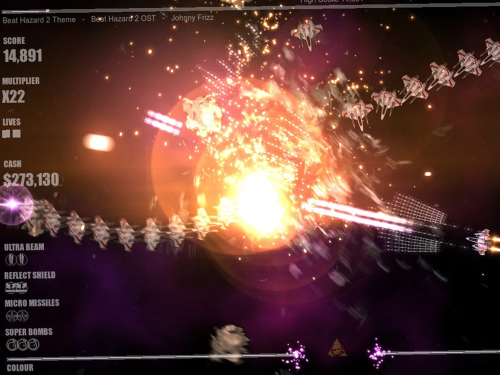 Beat Hazard 2 improves on and ramps up the awesome zen feeling of battling to your own music. Power up your spaceship and watch as the music boosts your firepower. Unleash hell on the enemy ships when you max out with weapon pickups!