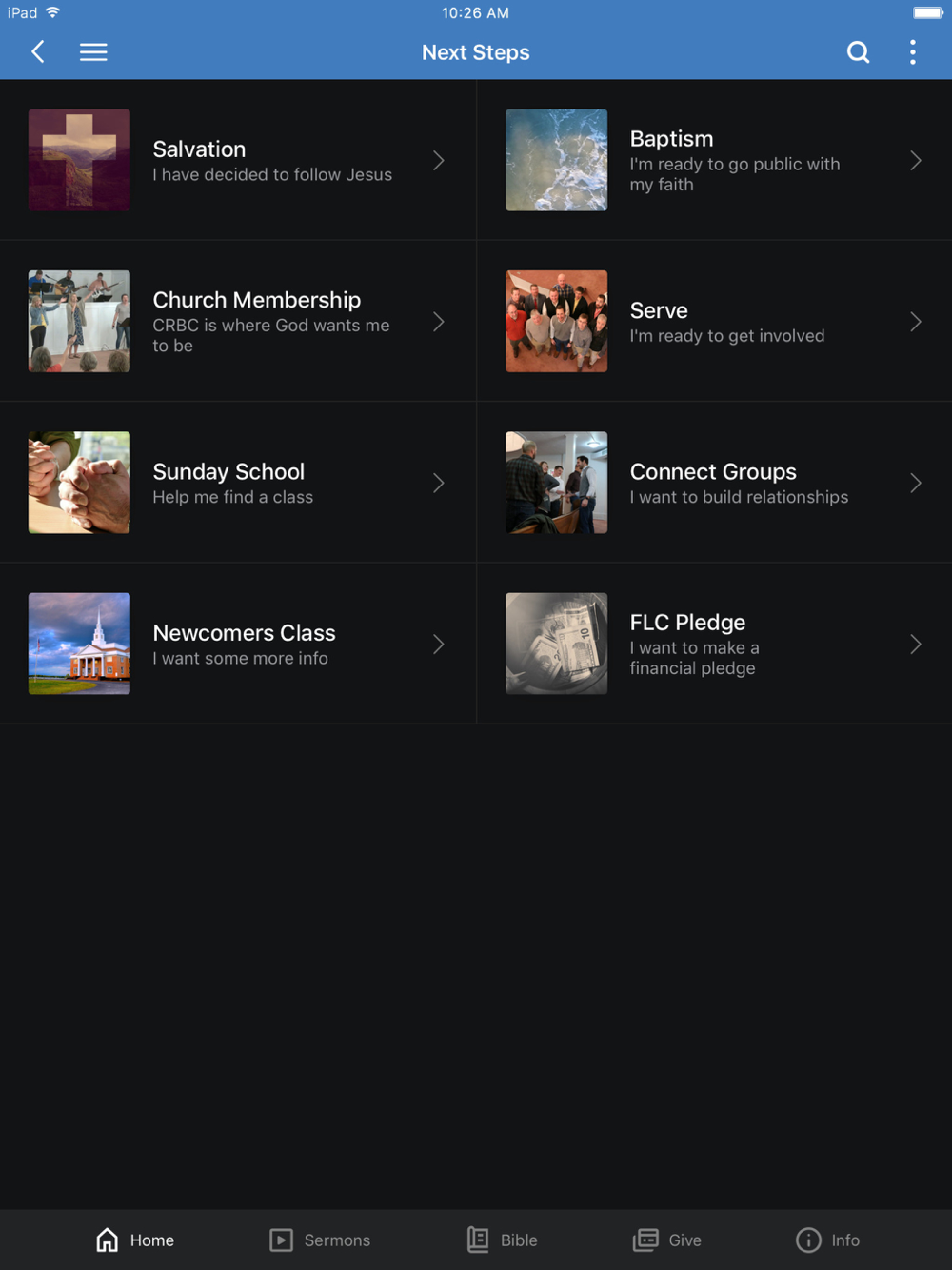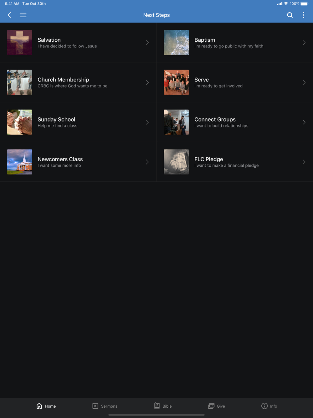 Stay connected from anywhere in the world! The Cross Roads app gives you access to content and resources that will help you grow in your walk with the Lord. You can watch services live on Sunday morning and on demand throughout the week. You can read articles, receive notifications, give, sign up for events, and much more.