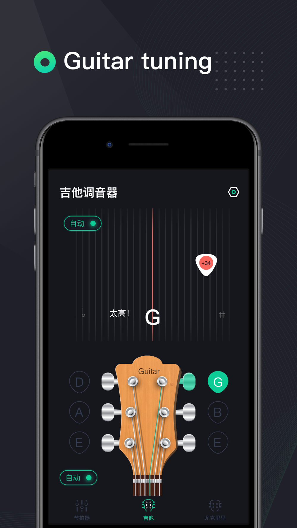 吉他调音器高精度版 是一款更简单、更快捷、更精确的调音应用!