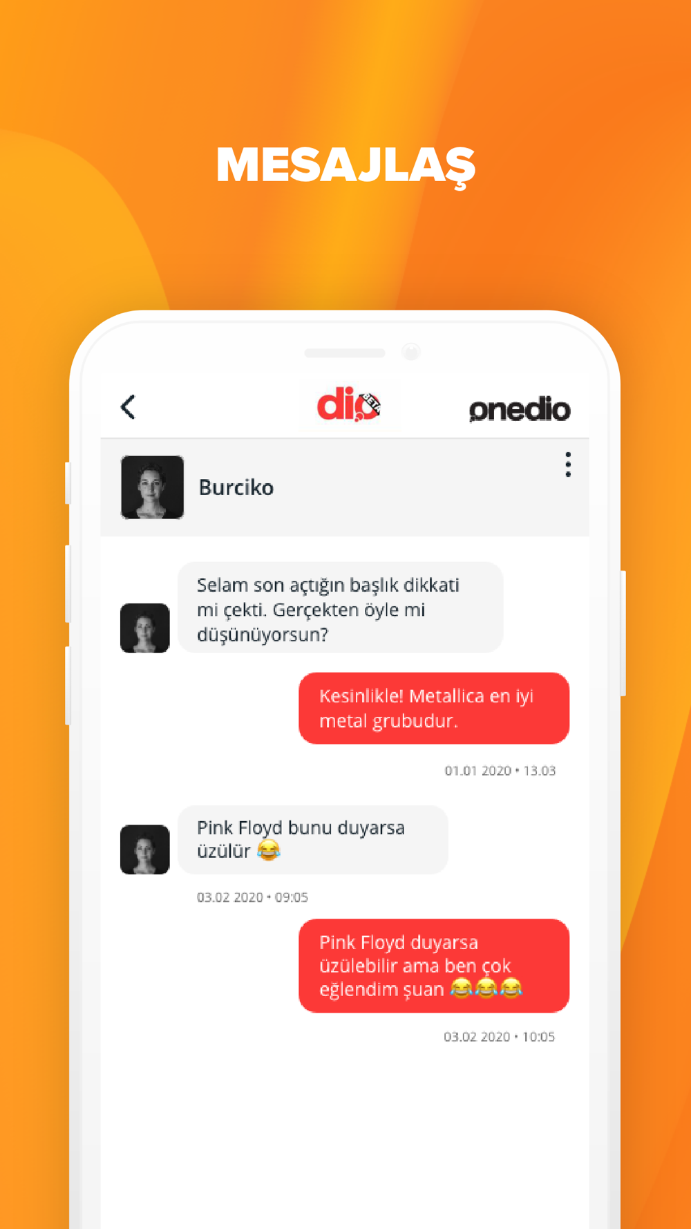 dio’da diğer insanlarla etkileşimin sadece dio ve yorum yazmakla sınırlı değil. Özele taşımak istediğin konular için kullanıcılara direkt mesaj atabilirsin.
