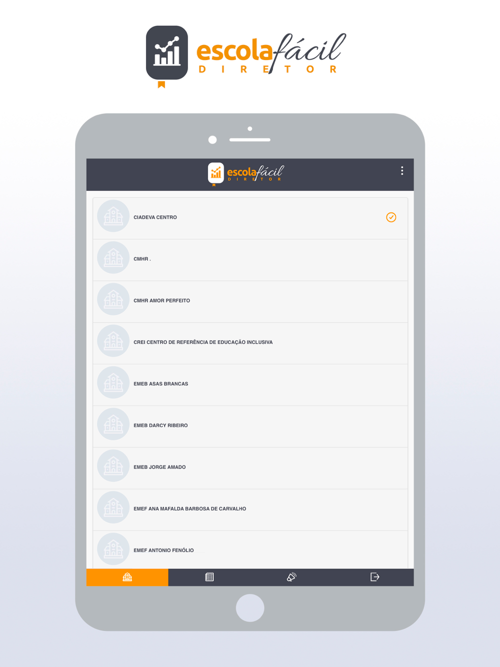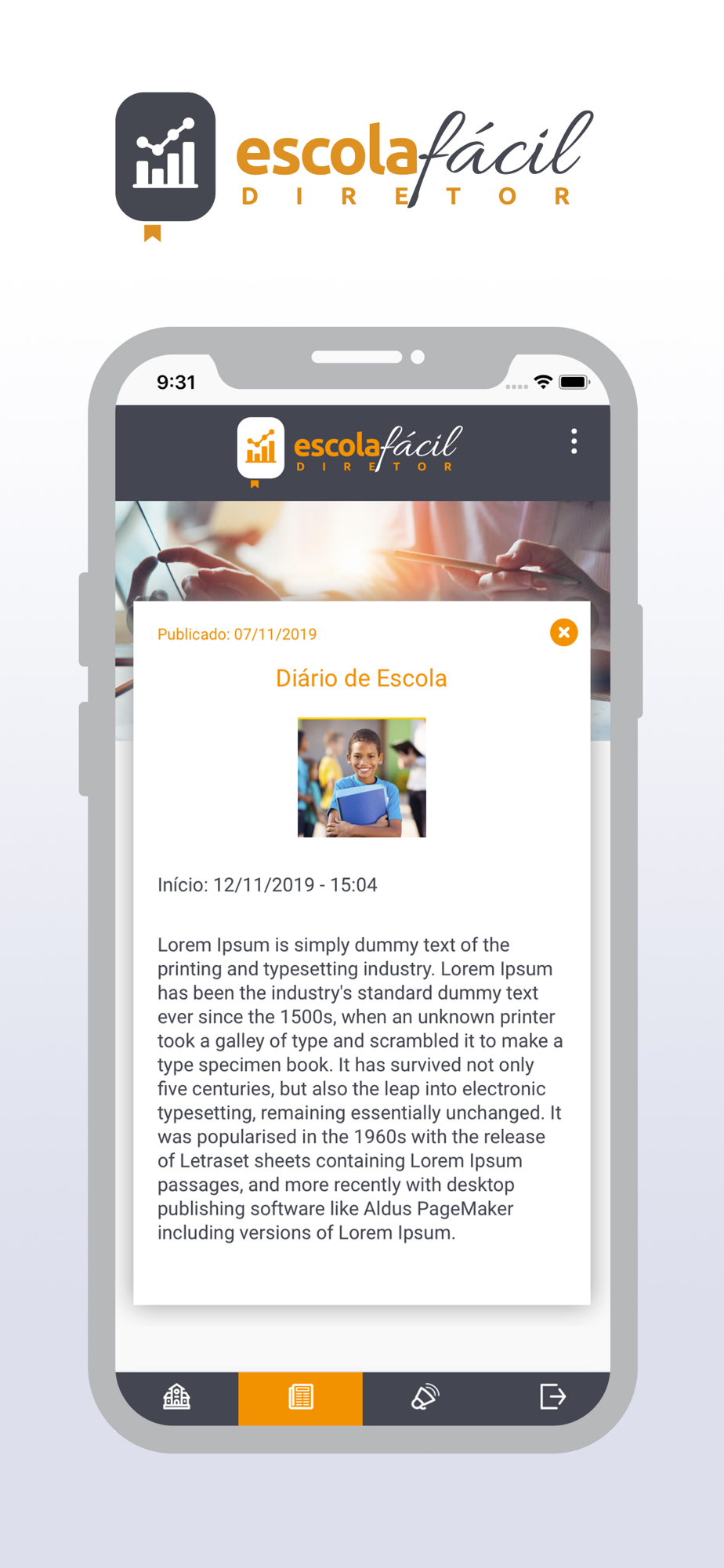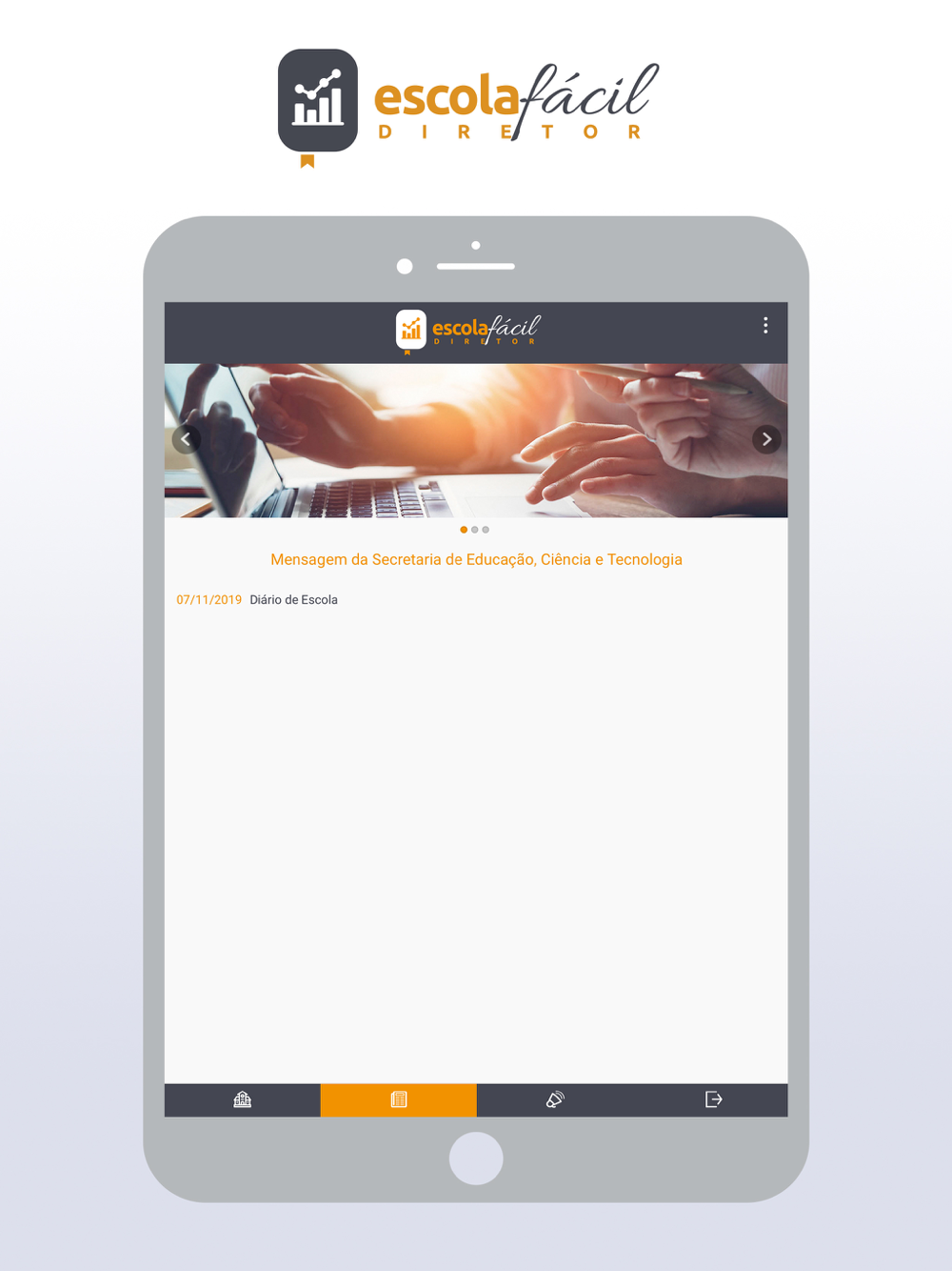 O app Escola Fácil Diretor concentra comunicados e notícias mais relevantes das instituições cadastradas para o diretor.