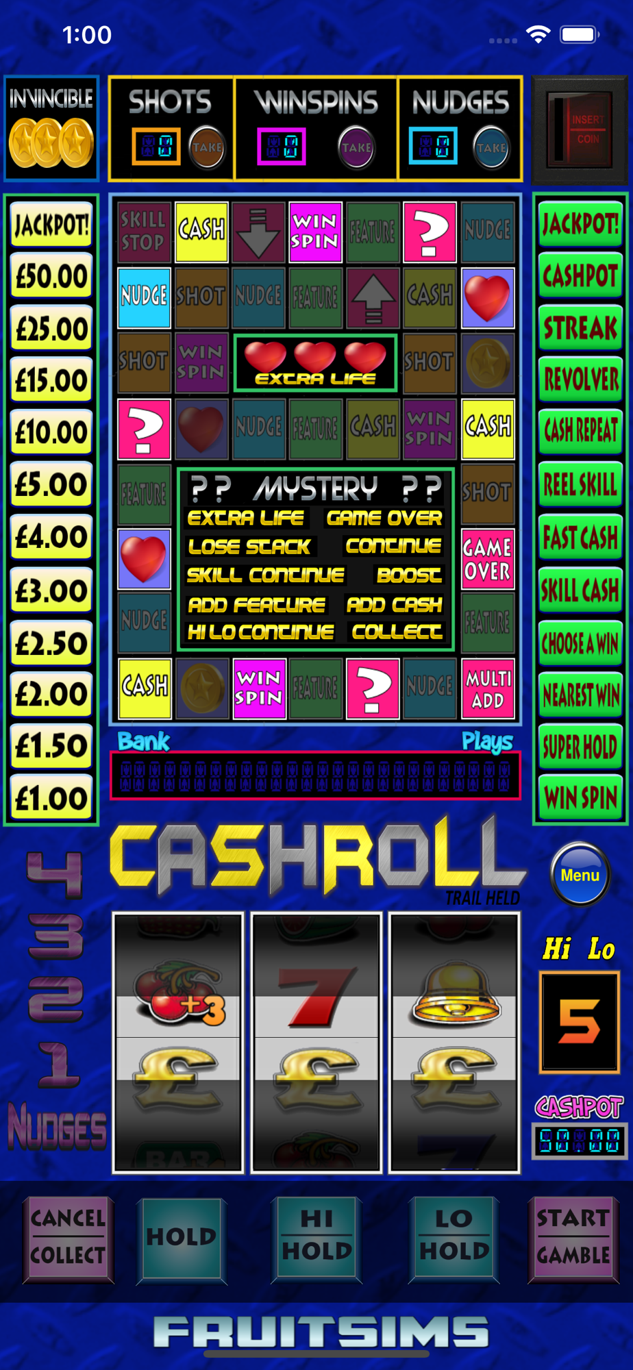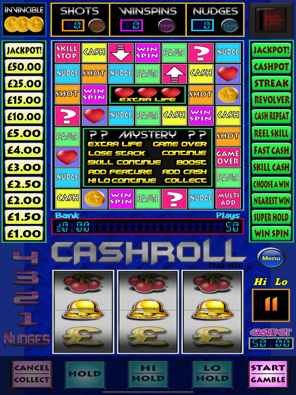 CashRoll fruit machine is a hi-tech "Just for Fun" UK style fruit machine simulator game, also know as a slot machine.
