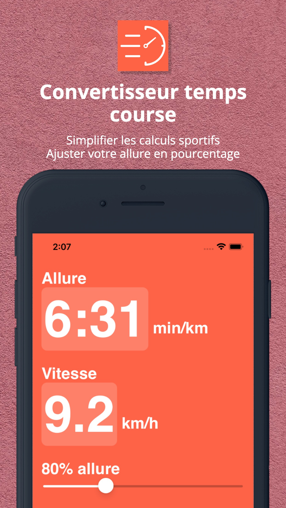 Tired of converting minutes per kilometers to km/h? Your friends often ask you how much 50min over 10km is in pace? This application will be useful for you.