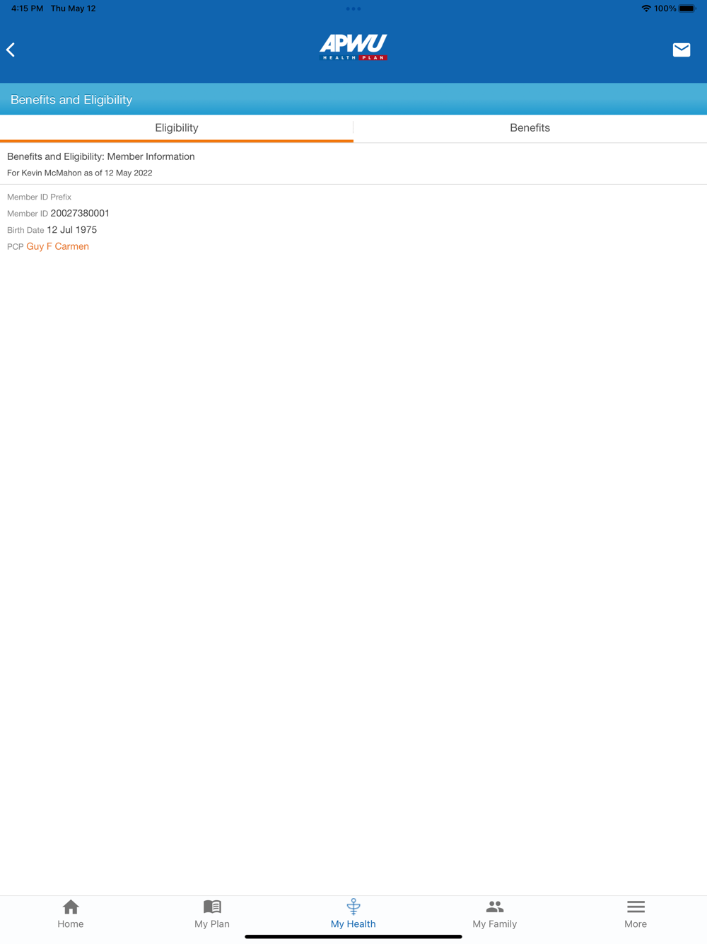 Now managing health care on the go is easier with the myAPWUHP app! You have exclusive access to your Member Portal. This mobile app lets you see your claims, information for the year to date, prescription history and so much more. Use the app to: