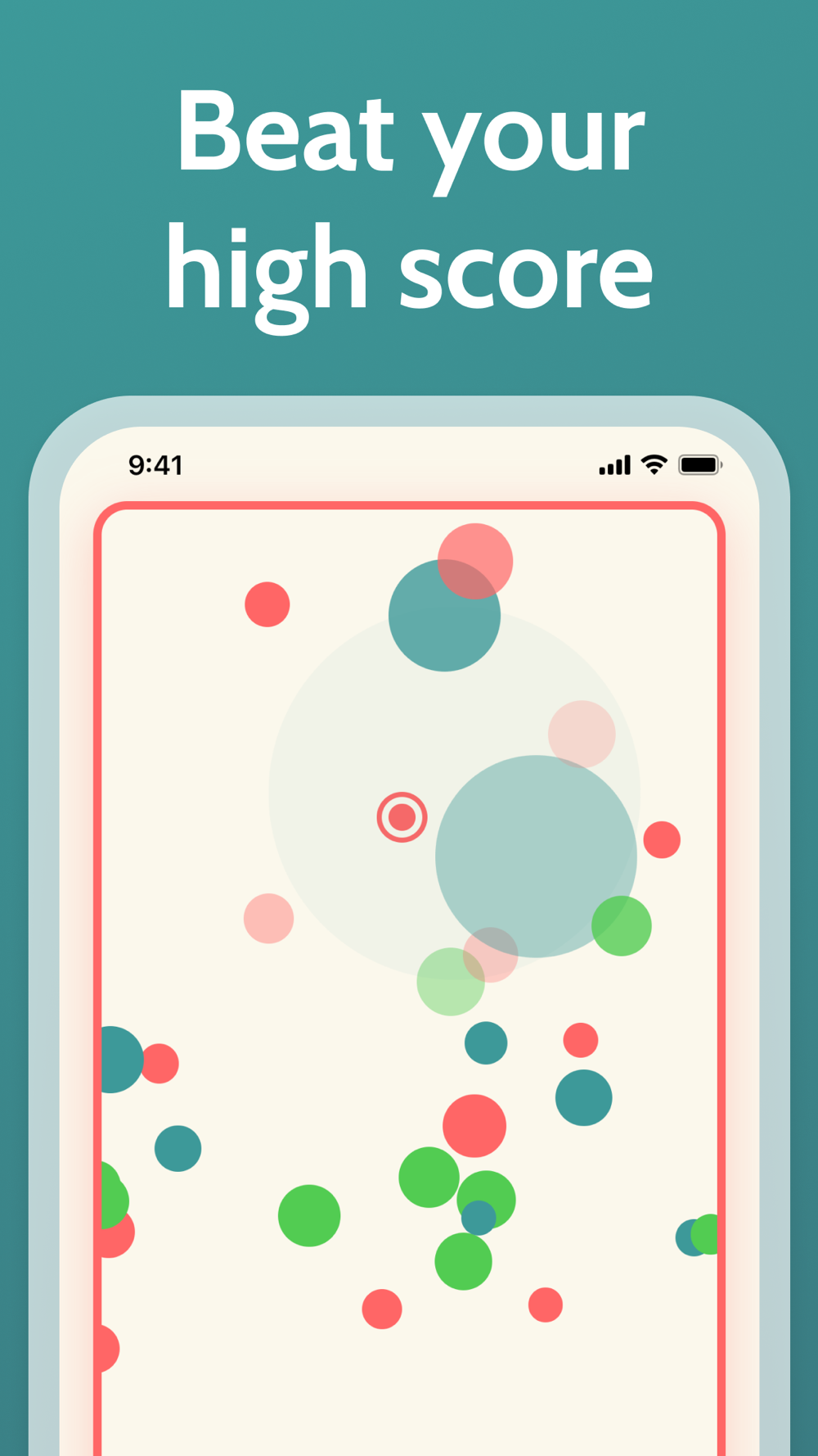 Survive for as long as possible through endless waves in this casual and easy to learn but hard to master action game. Avoid the red circles and pop as many green ones as you can to increase your score. Colliding with a red circle means it's game over, so make sure to get rid of them by popping the blue, orange and purple ones. How many points can you get? Can you beat your friends?