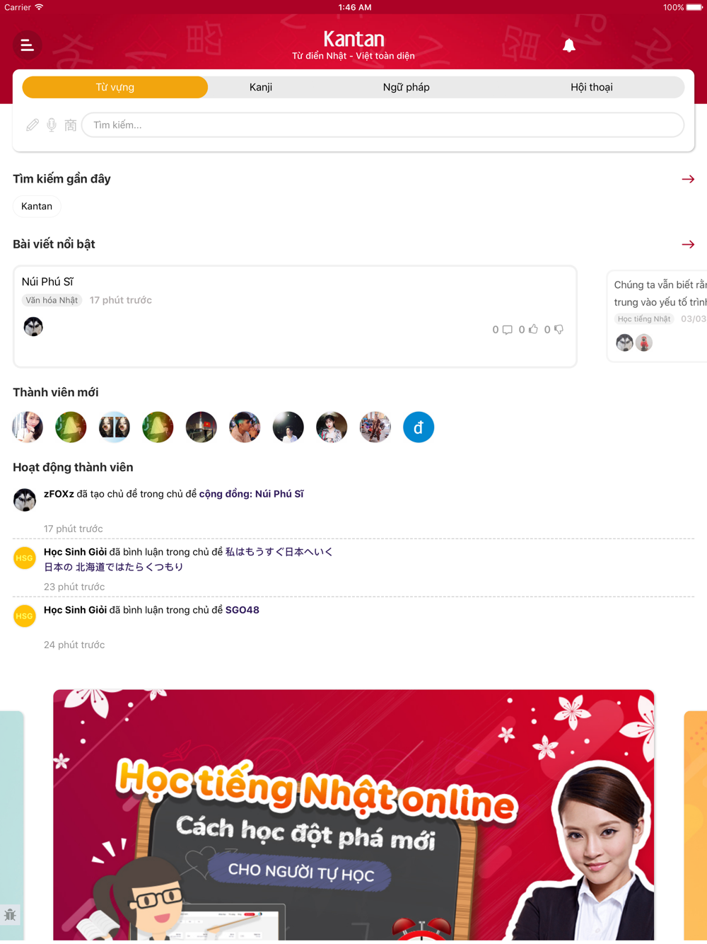Kantan là một ứng dụng từ điển Nhật - Việt mạnh mẽ và thông minh. Nó cho phép bạn tìm từ song ngữ Nhật - Việt hoặc Việt - Nhật, chữ Hán, câu ví dụ, ngữ pháp, cách sử dụng ngữ pháp một cách nhanh chóng và dễ dàng hơn tất cả các ứng dụng khác.