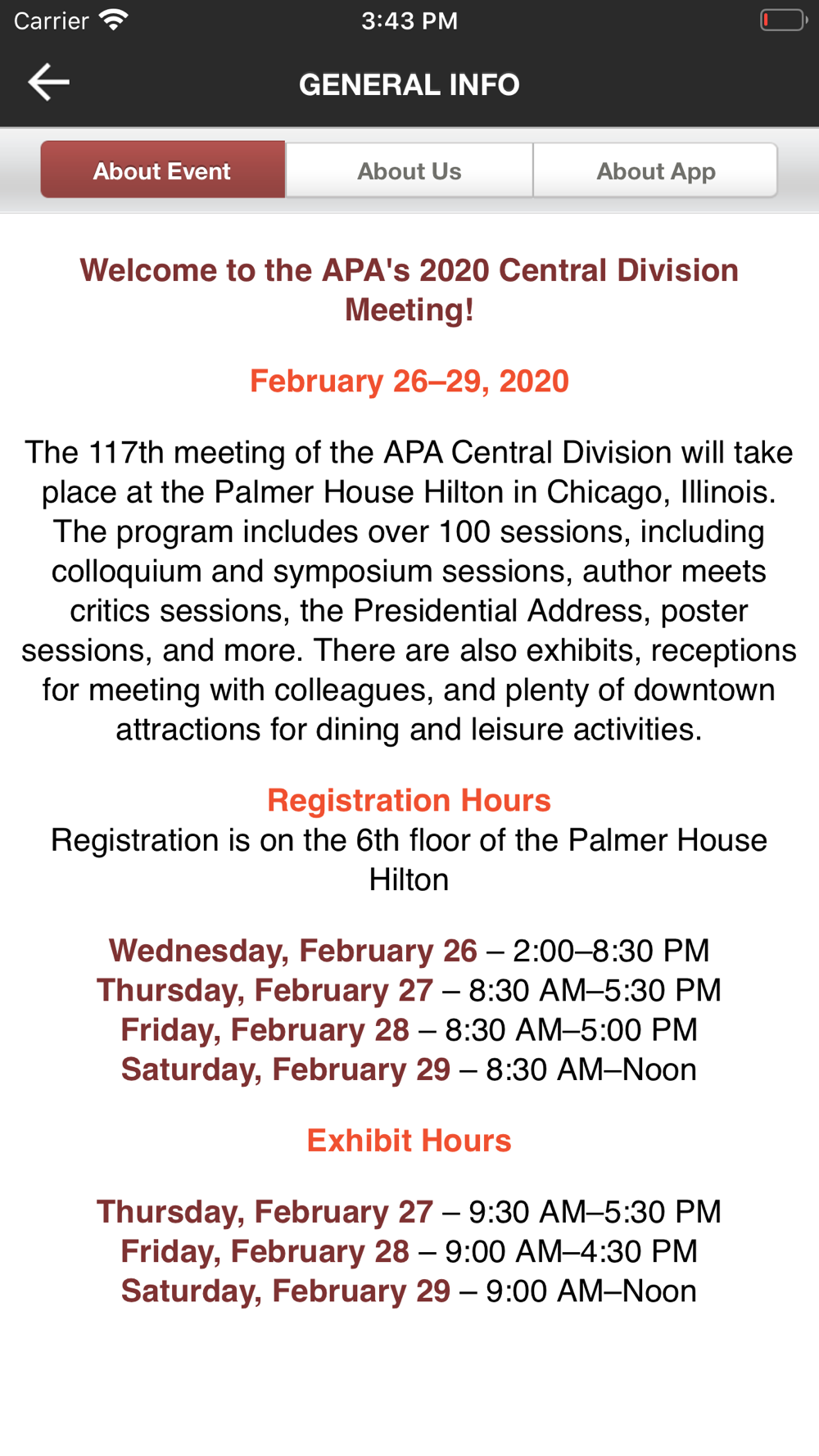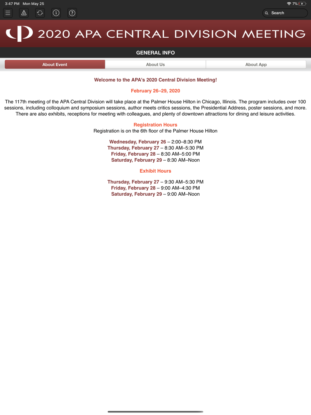APA Meetings is the official mobile application for the American Philosophical Association Division Meetings.