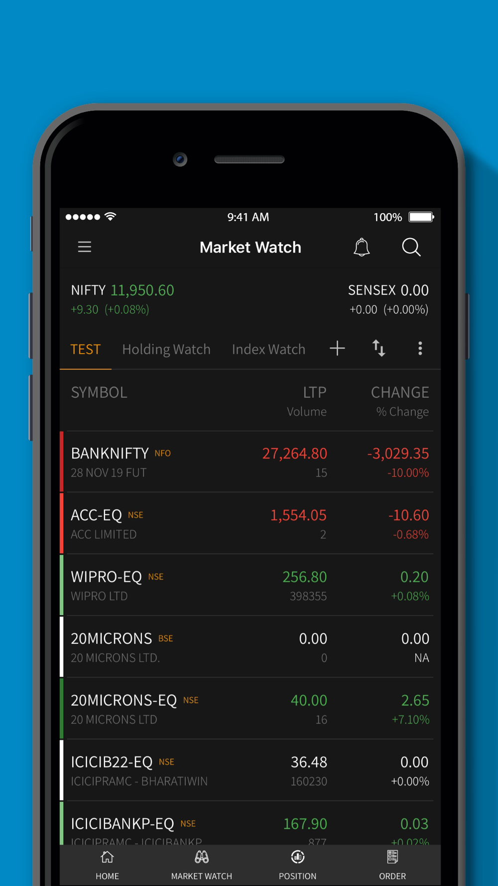 * Trade and track in equity, commodity, currency and F&O