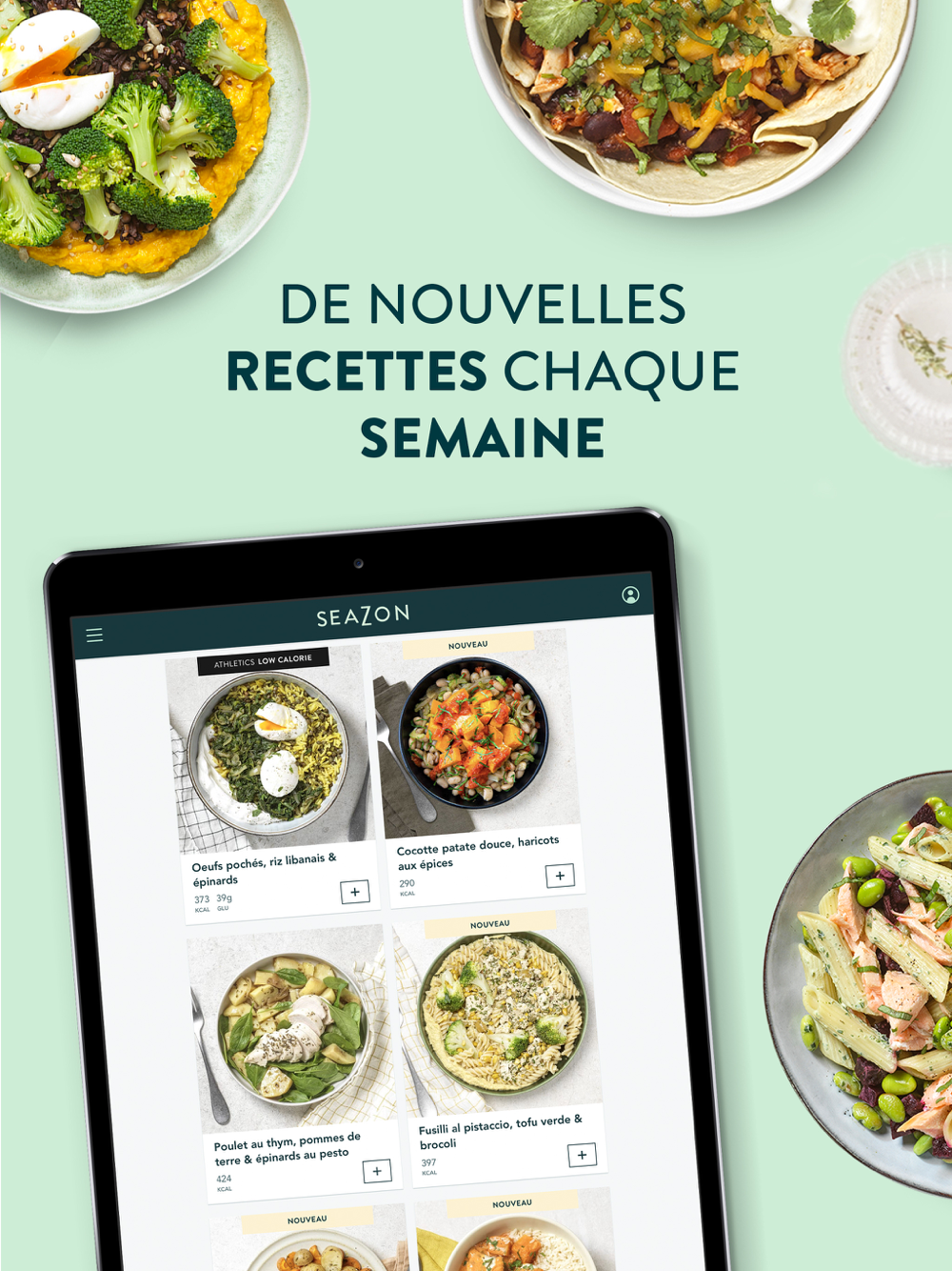 Choisissez vos plats parmi des recettes variées et équilibrées.
