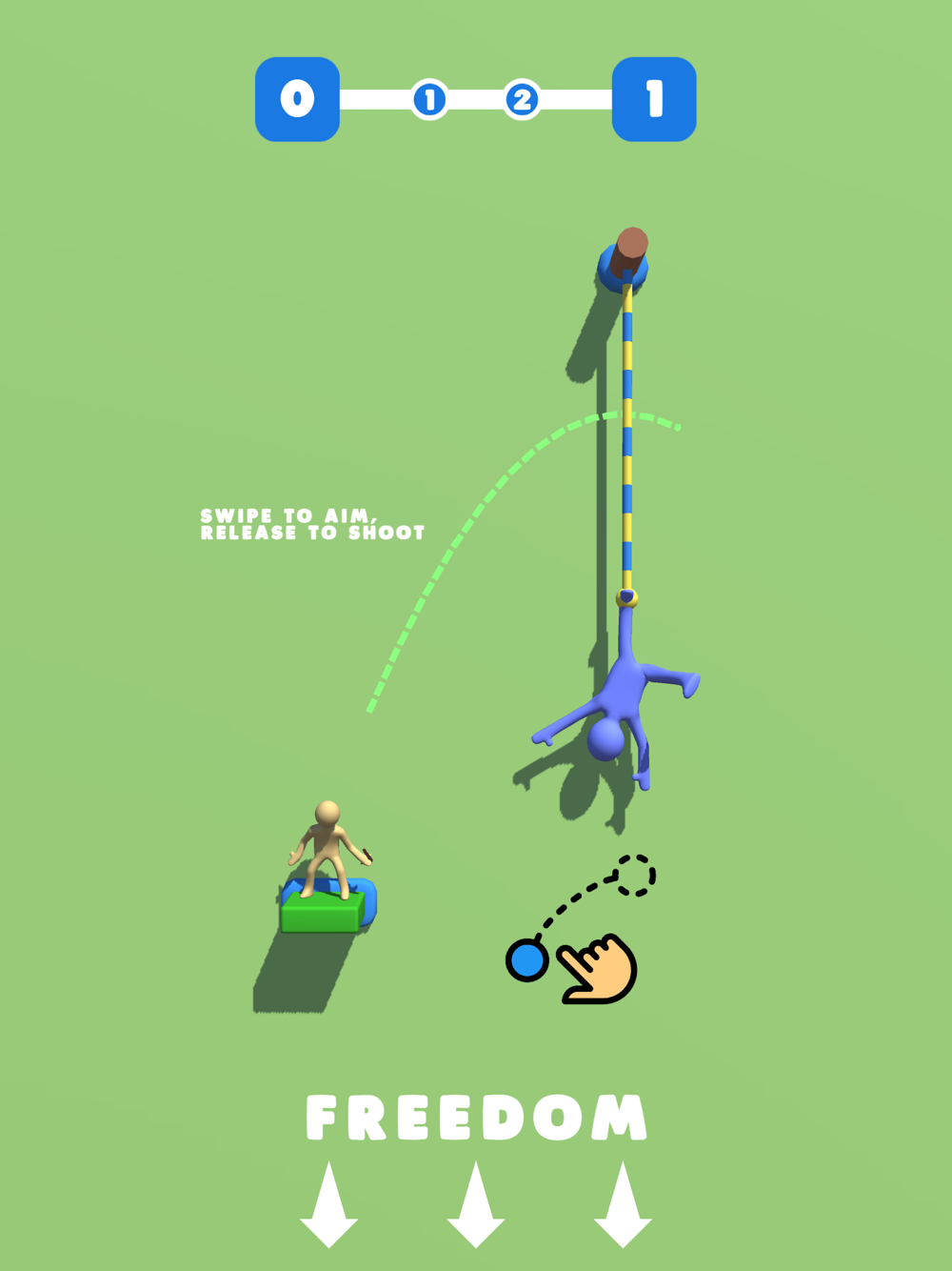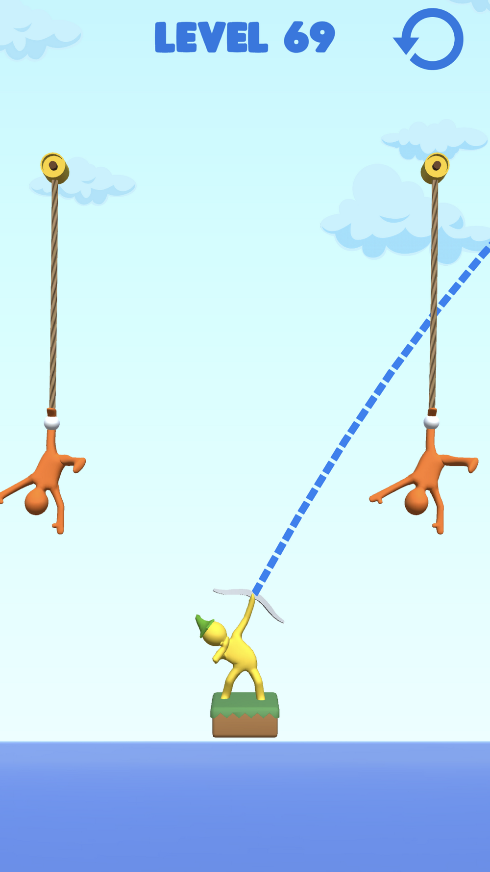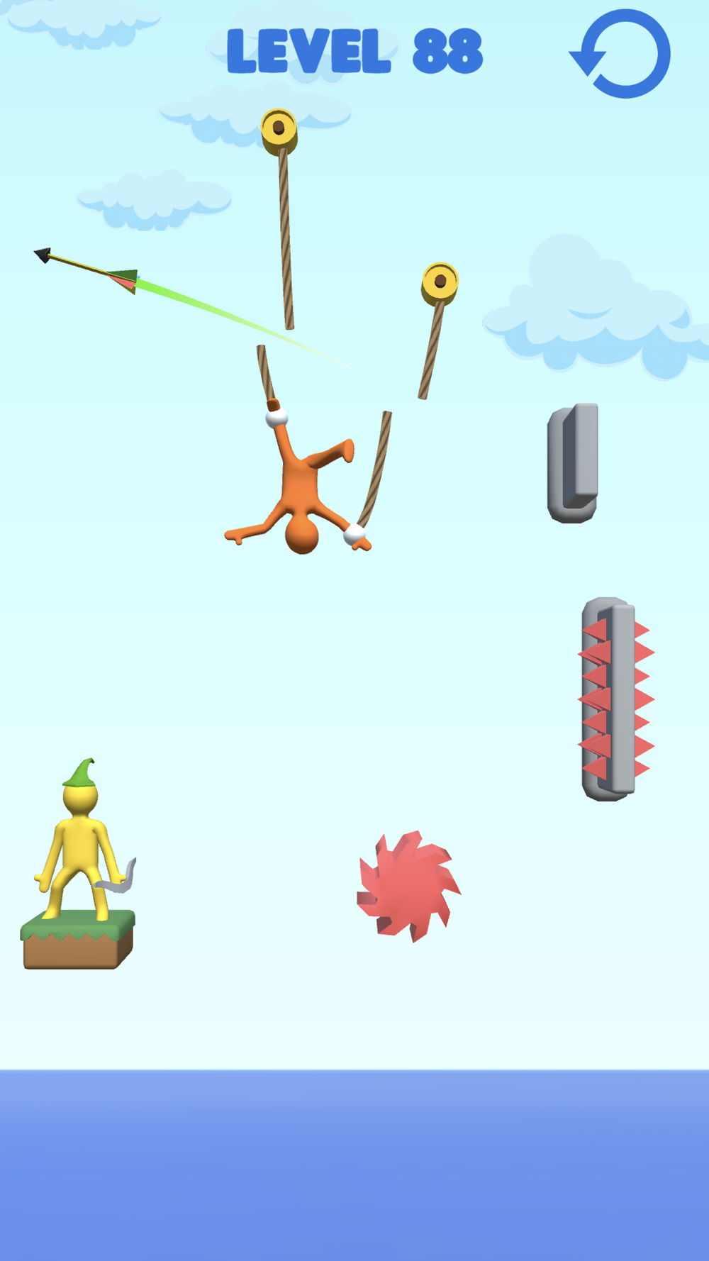 Shoot from the bow. Hit the rope to free the dummy. Free all the dummies.