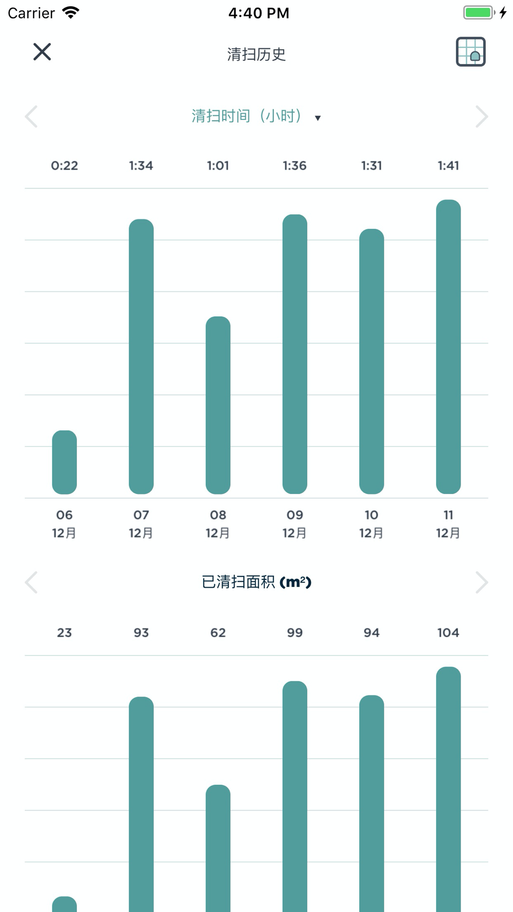 • 断点续扫充电功能可以缩短总清扫时间(取决于清洁地图大小)