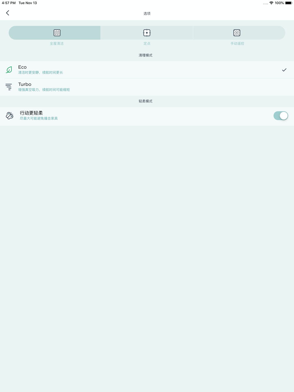 • “人工远程”让您可以通过 Neato app 控制您的机器人