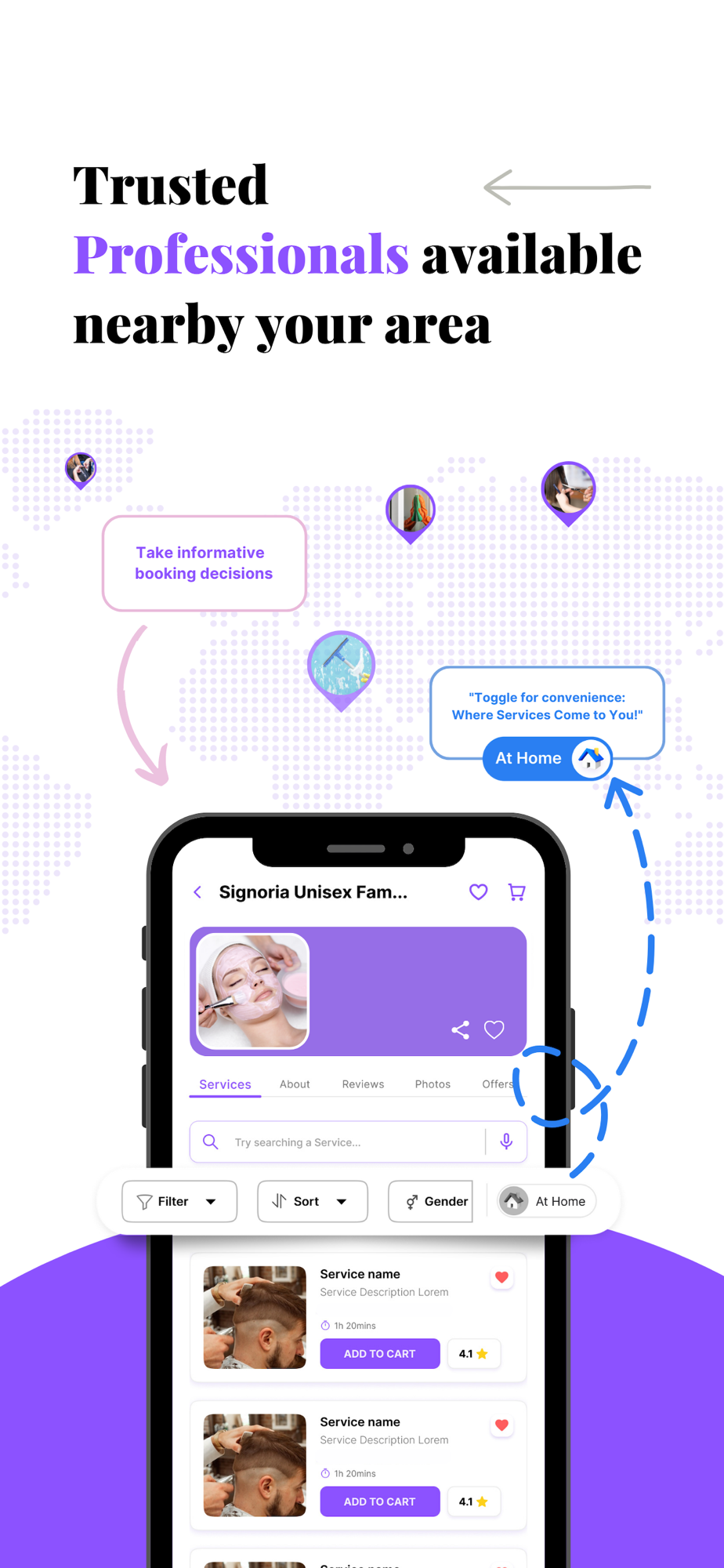 - Experience the ultimate convenience by choosing your preferred professional to get services done at the comfort of your home or in-store.