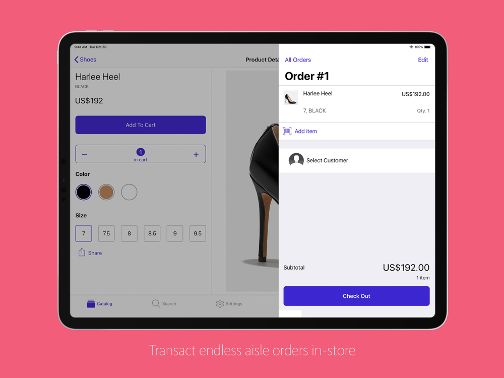 Offer an unparalleled in-store customer checkout experience and save the sale with endless aisle. If an item is not present in-store, allow associates to sell the item and have it shipped to a shopper’s address.