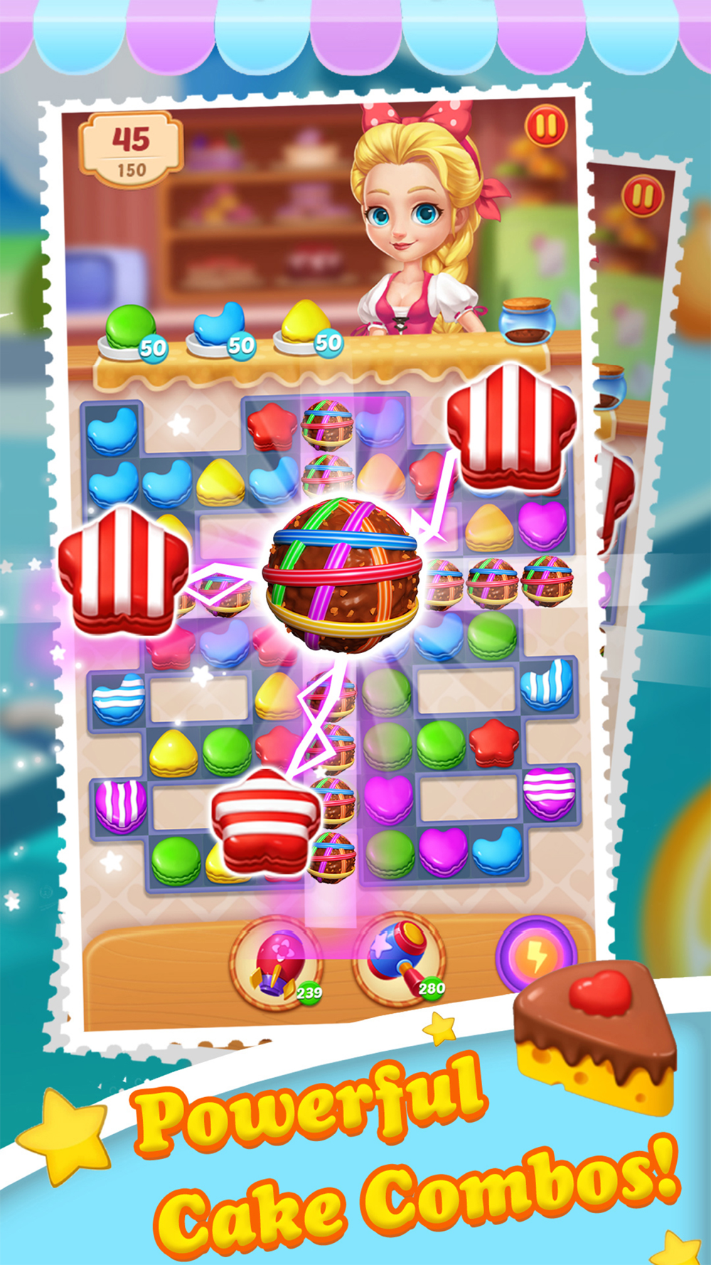 Start to dive into the tasty cake adventures and play with friends in the amazing match 3 game with thousands of fun but challenging levels now!
