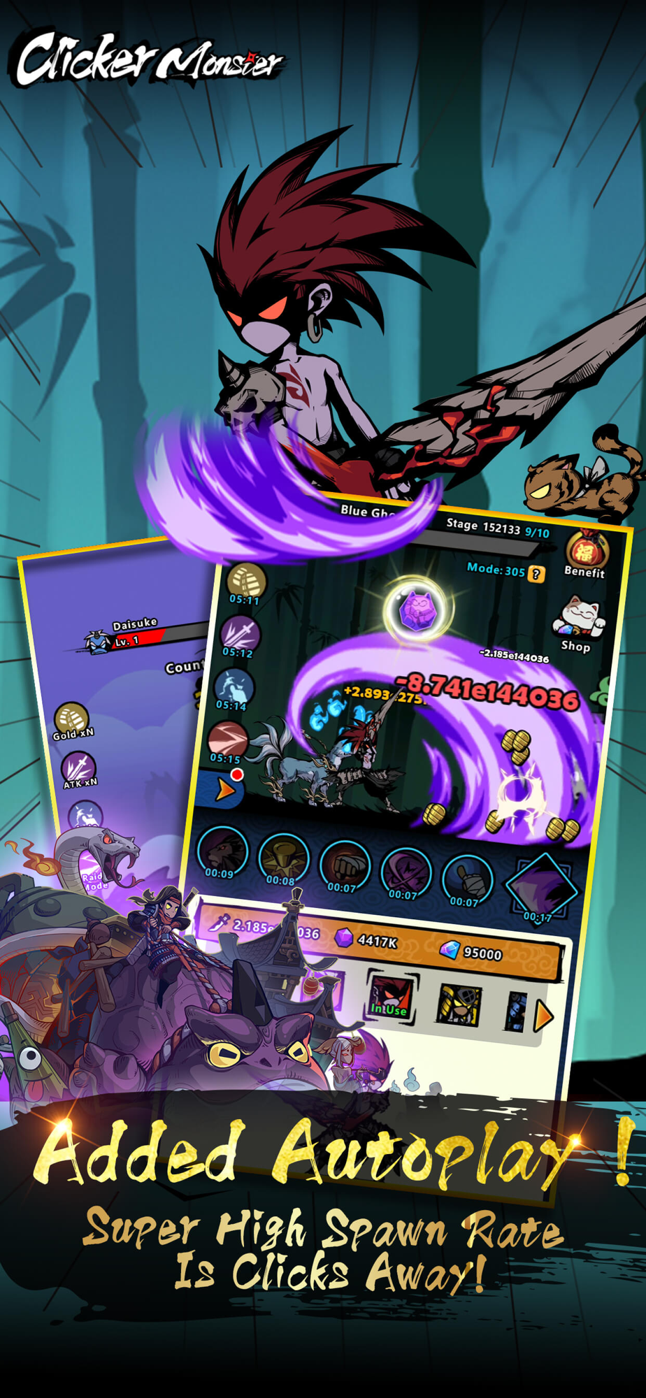 Clicker Monster has poured efforts to develop the auto-play mode and improve the graphics and monster combat experience, in a hope to present a new auto-play game and a new world.