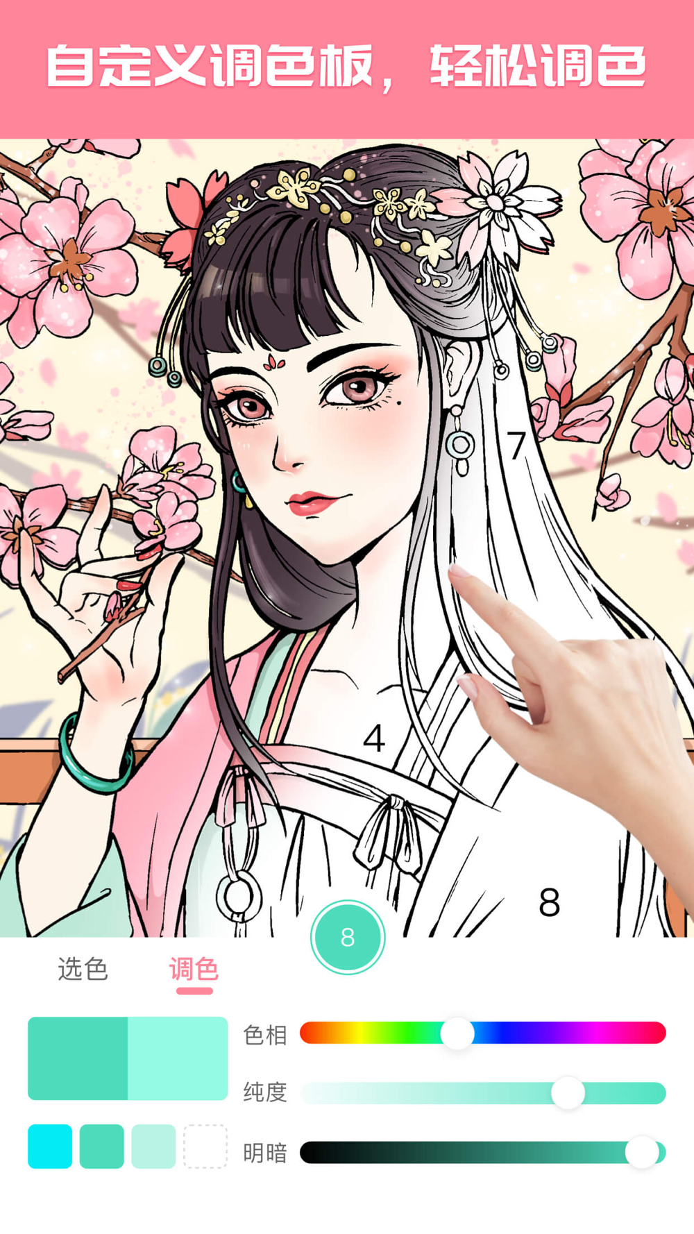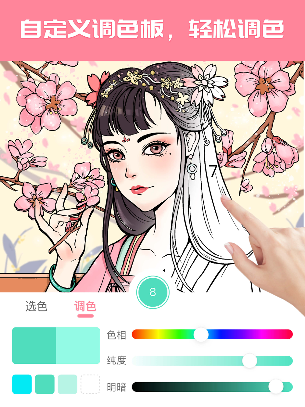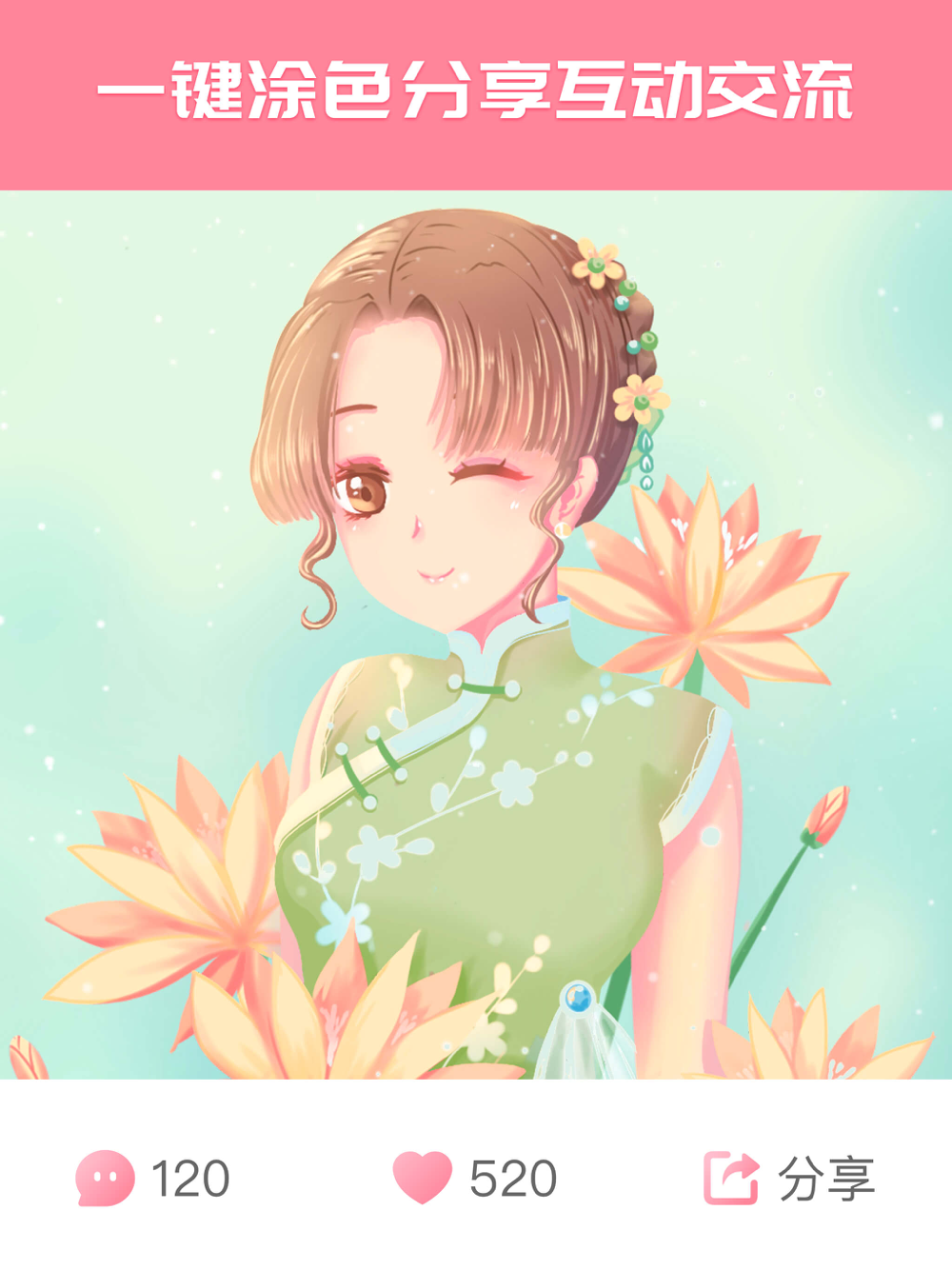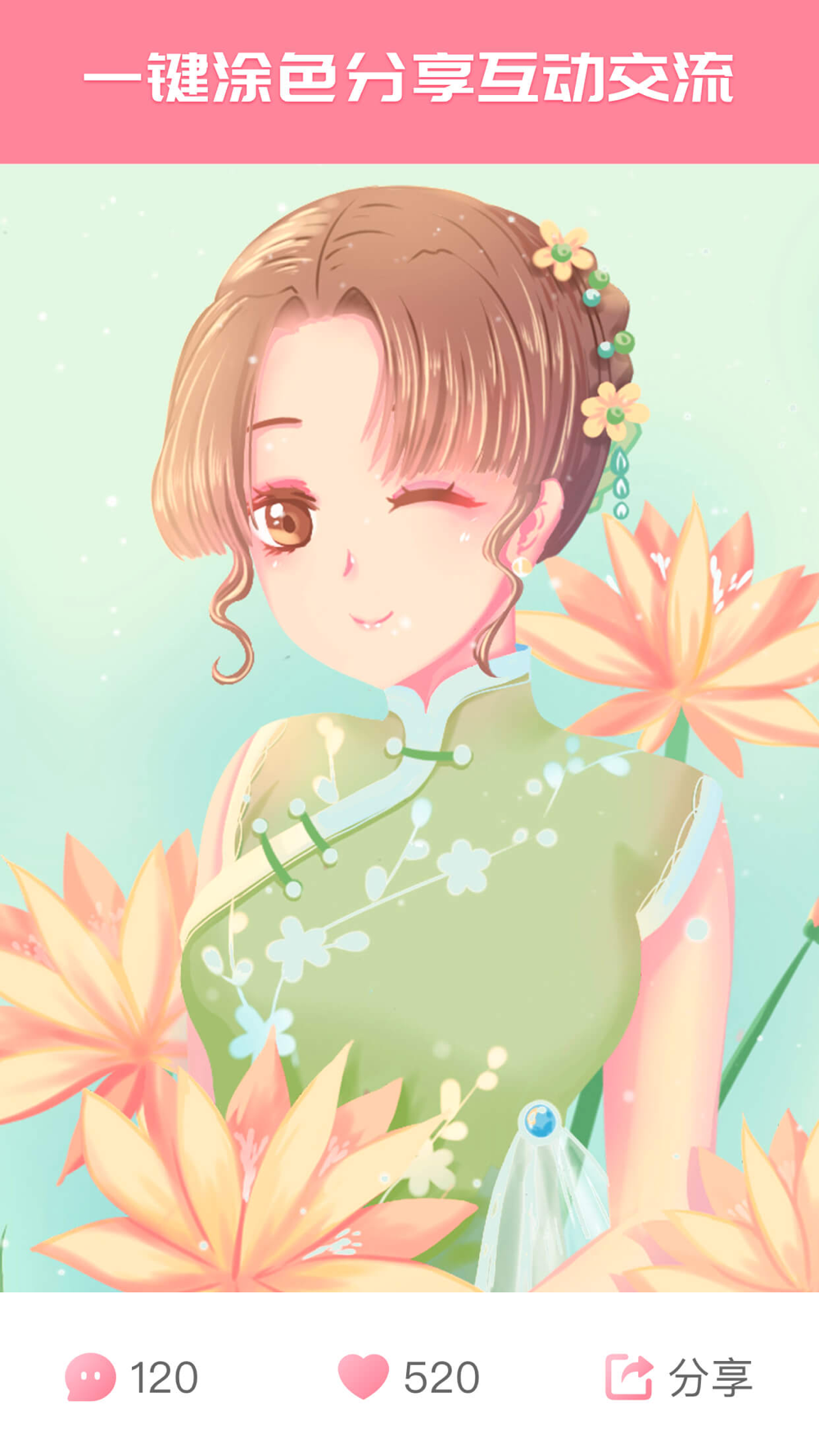 有数千张富有创意而风格独特的精美画作让你选择,还有多种配色方案,涂你所爱。无论是唯美朴素的纯色绘本、还是独树一帜的精品彩绘画作,所有画作都经过我们的插画师精心设计,素材丰富多样,古风人物、可爱漫画、花卉、动物等多个分类供您挑选,只为了让您的艺术作品更加耀眼。