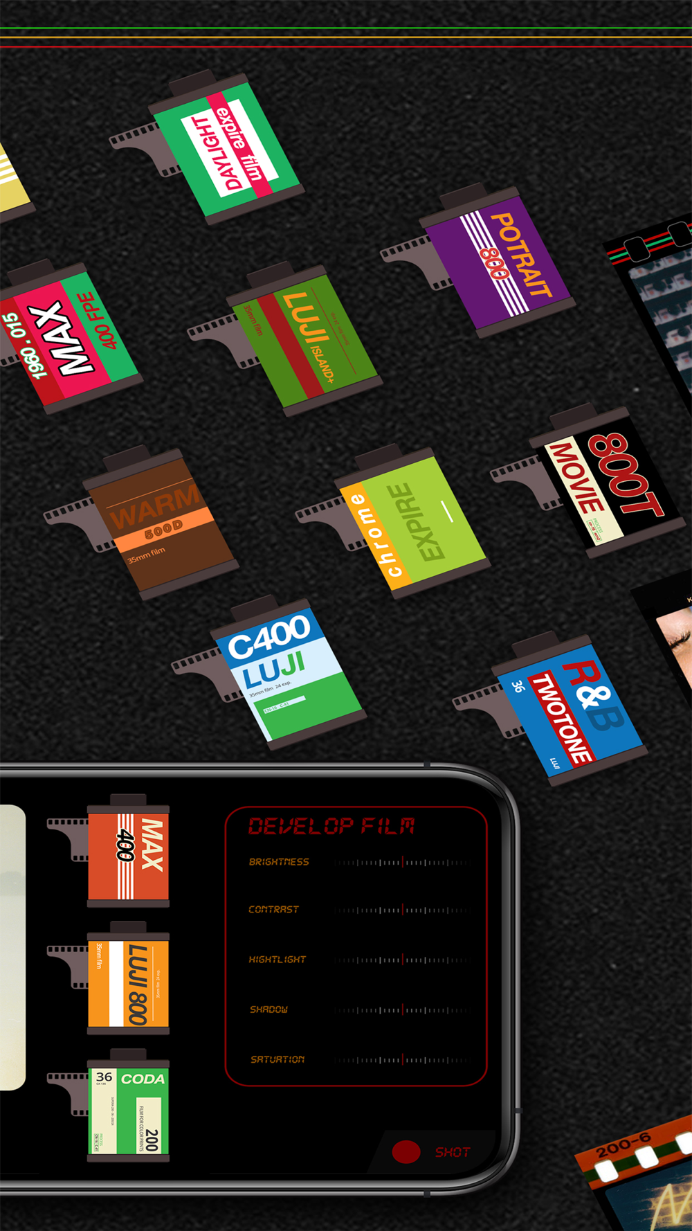 - After snap photo you can adjust and develop film photo by luzmo develop film function