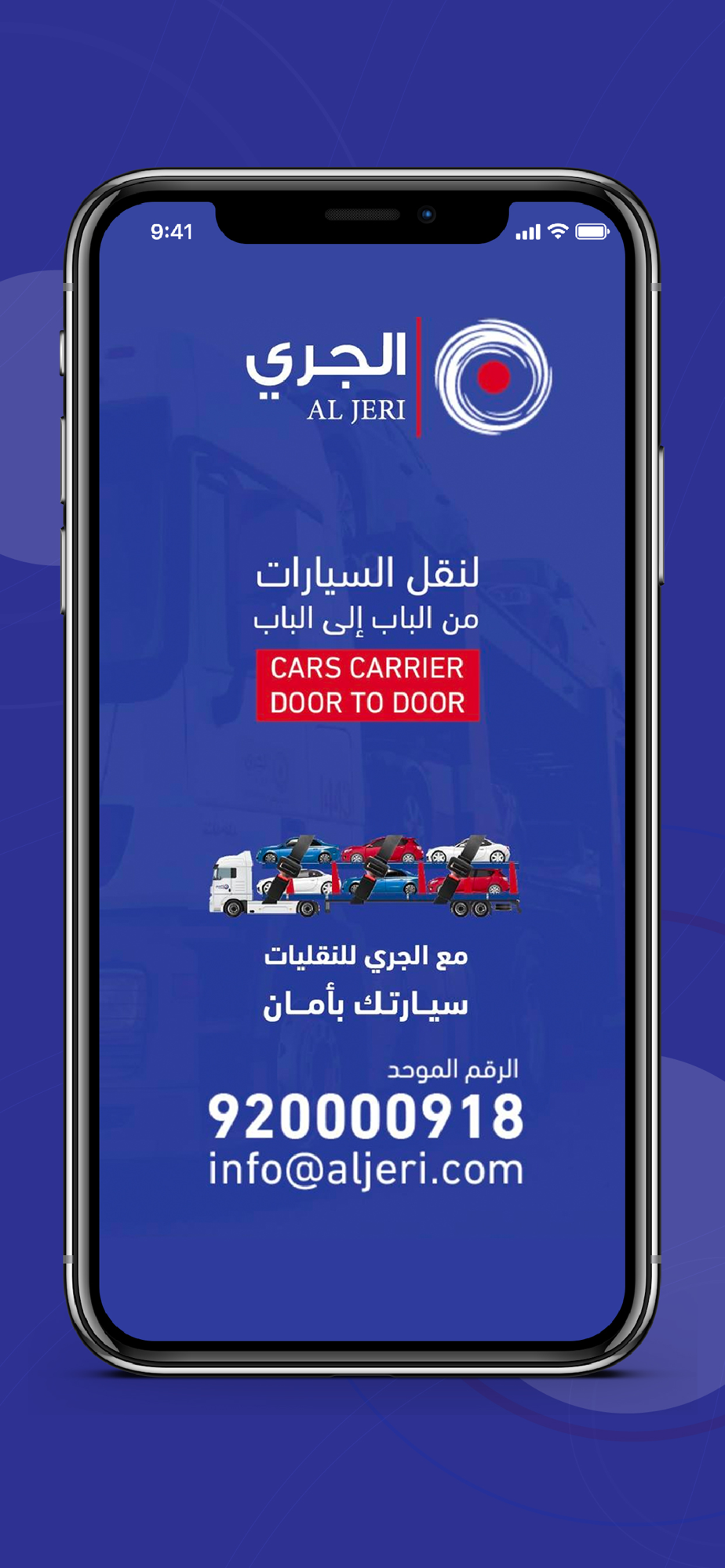 Al Jeri application provides car transportation service between cities in Kingdom of Saudi Arabia with ease, professionalism and safety where you can through the application, request a service to transport your car to any city in Kingdom of Saudi Arabia while you are at your home or your office or through our branches in the Kingdom.